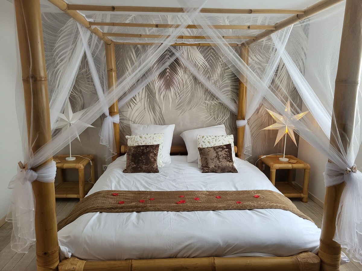 Alojamiento turístico amueblado de 4 estrellas También visible en la oficina de turismo del Oeste. El espacio habitable propuesto de 80 m2 consta de dos partes de vida separadas por un patio interior privado. Está adosado a la casa en la que vivimos. Disfrute de un acceso privado con estacionamiento cerrado (para una berlina estándar), la comodidad y el encanto del lugar en un barrio muy solicitado. Cruce la carretera y estará en la laguna protegida de la Saline les bains en menos de cinco minutos.