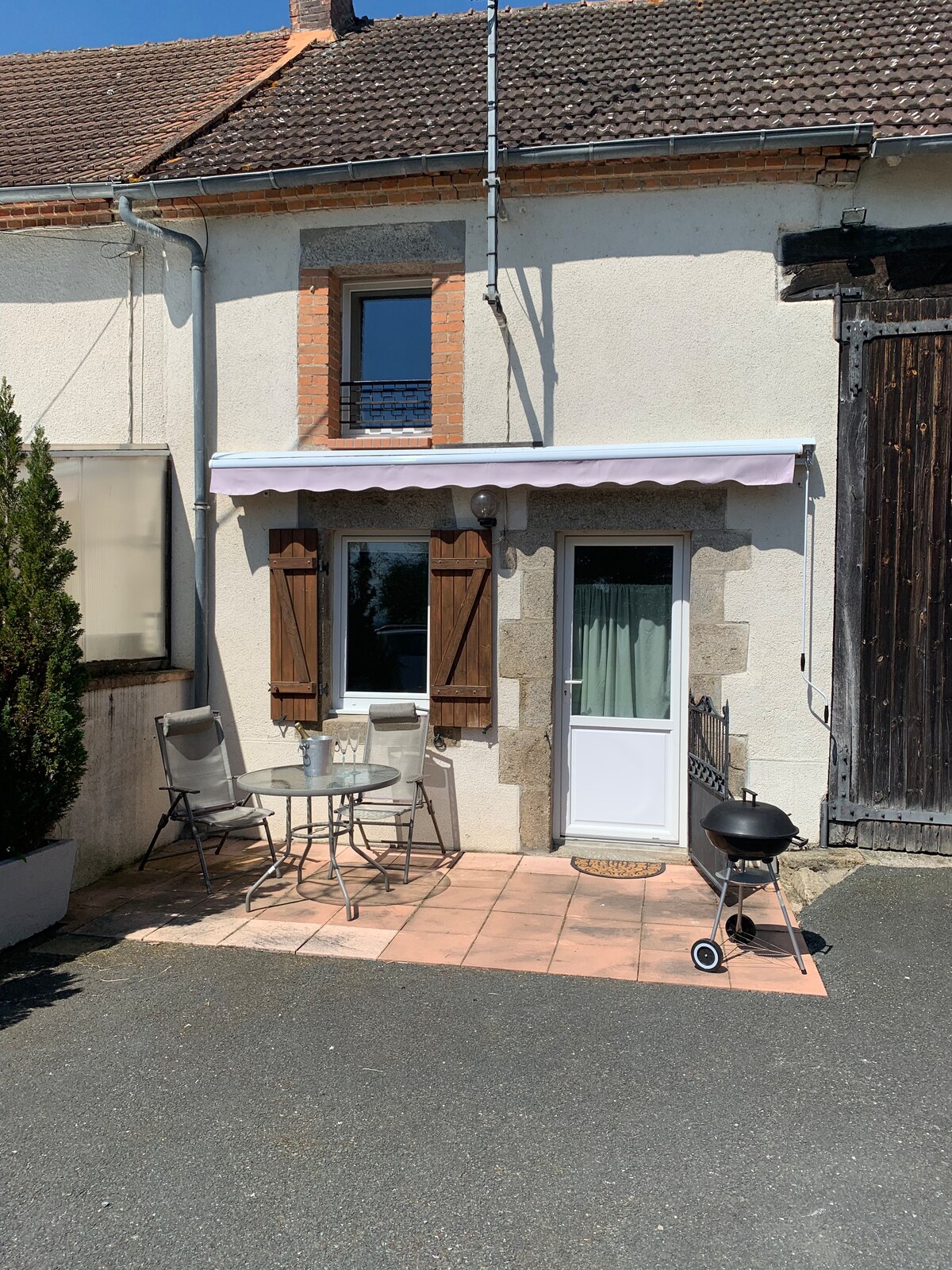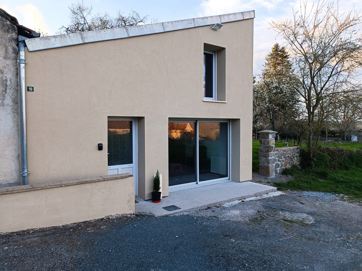 La casa es una casa independiente y auténtica con entrada privada y terraza privada y una fantástica vista del paisaje de Creuse. La terraza está situada en una zona elevada, con vistas ininterrumpidas de la puesta de sol y espectaculares cielos nublados. Ubicación muy tranquila en una calle sin salida. Un lugar maravilloso para recuperarse del ajetreo diario, pasar un fin de semana de descanso o una estancia cómoda mientras busca su propia casa en Francia.