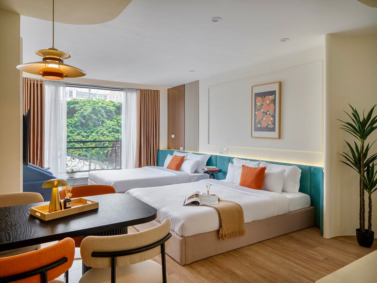 Welcome to Inam Home- A stylish 40m² apartment with elevator access, perfectly located right on the main street opposite Hanoi Train Station. The apartment features 2 queen beds and a fully equipped kitchen, perfect for families or groups of friends. An elevator is available, making it convenient if you travel with luggage.