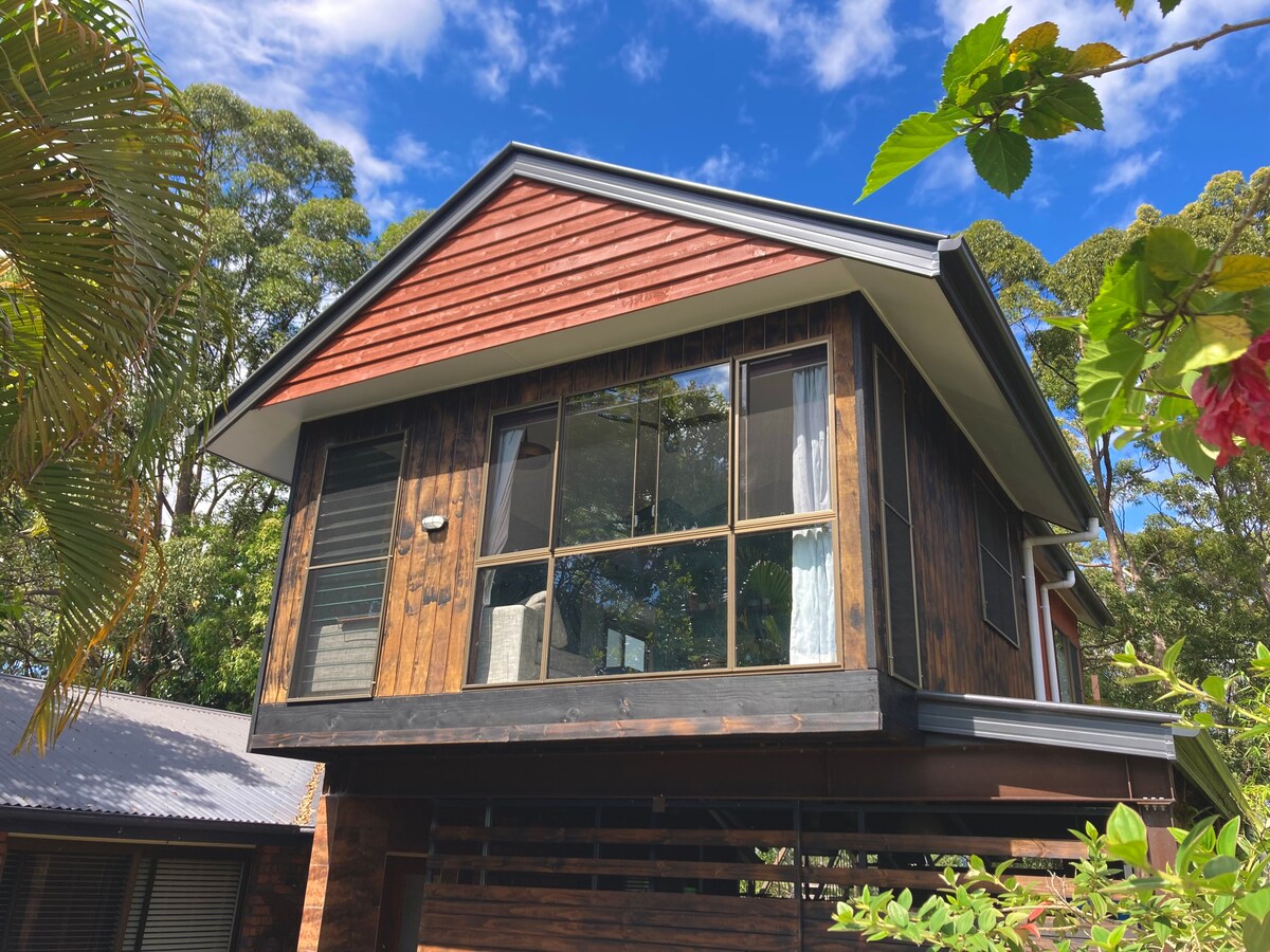 No busques más para una escapada privada única en el interior de Noosa. Cabaña independiente, luminosa y espaciosa en un jardín forestal aislado. Abundante avifauna y ualabíes. Hermosa y artísticamente decorada, sensación costal. Cama extremadamente acogedora, sábanas blancas. Cocina americana propia recientemente renovada, ducha, inodoro de compostaje, barbacoa. Excelente recepción telefónica, internet. Anfitrión amable. Cerca de Eumundi, Noosa, Peregian, Coolum, fácil acceso a toda la costa Sunshine. Lujo puro y sin sofisticaciones.