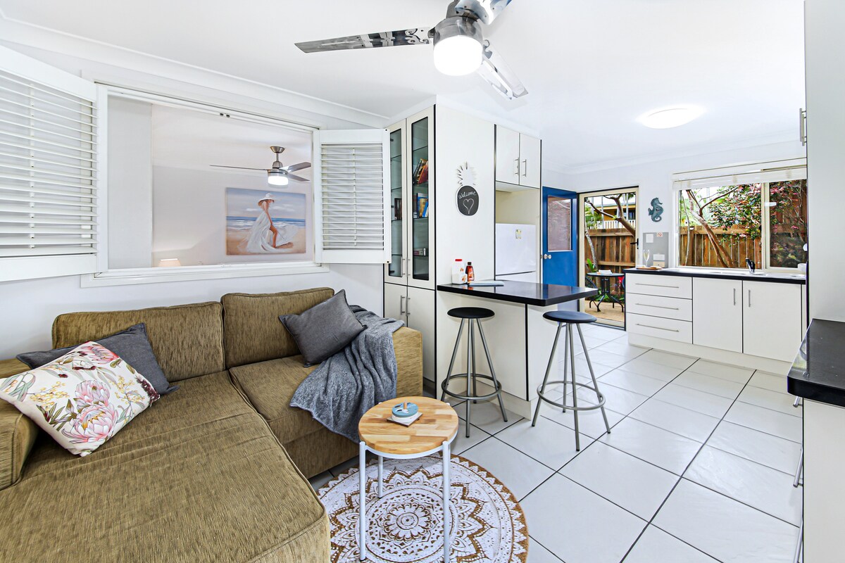 Las pequeñas cosas marcan la diferencia. Bicicletas incluidas. Bonito apartamento totalmente independiente, para 1 o 2 personas. Casa de nivel bajo con 2 entradas privadas. Los inquilinos/coanfitriones a tiempo completo viven arriba en la casa de playa original. Son personas maravillosas y muy respetuosas con los huéspedes. Sin embargo, como en cualquier unidad, es posible que escuches sus pasos arriba. A 1,2 km fácilmente (a pie, en bicicleta, en coche) por un camino hacia el acceso a la playa, a 1,7 km del centro de Coolum. Parada de autobús a 50 metros o autobús de cortesía a los clubes.
