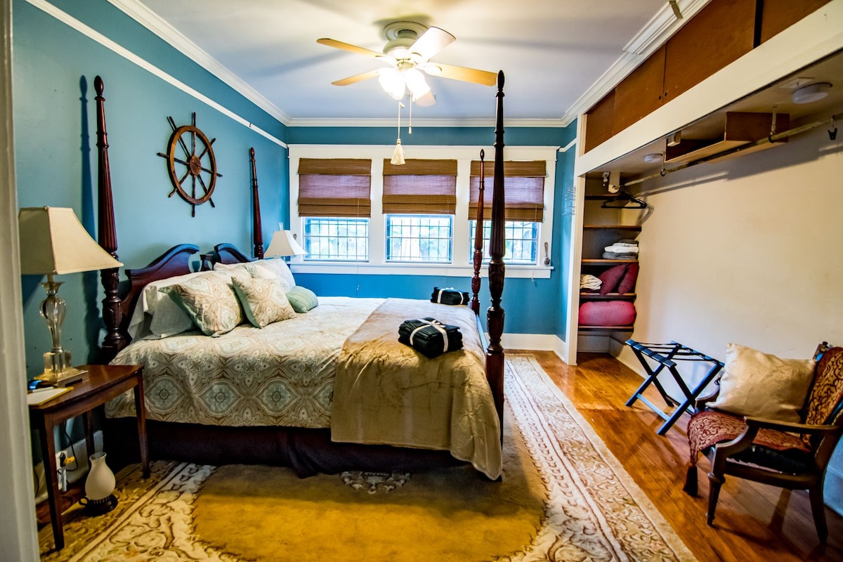 Preciosa casa de huéspedes ubicada a 3 manzanas al oeste del Capitolio del Estado, tiene 2 dormitorios y 1 baño en un plano de piso abierto, las comodidades incluyen encimera de granito en la cocina, gabinetes de diseño personalizado, baldosas de cerámica en el baño, sala de estar y cocina, chimenea eléctrica y TV arriba, el manto en la chimenea, cada uno de los 2 dormitorios tiene una cama tamaño king, puedes relajarte escuchando la cascada. ¡NUEVO, tenemos un conector de pared universal EV Nivel 2 para tu uso!