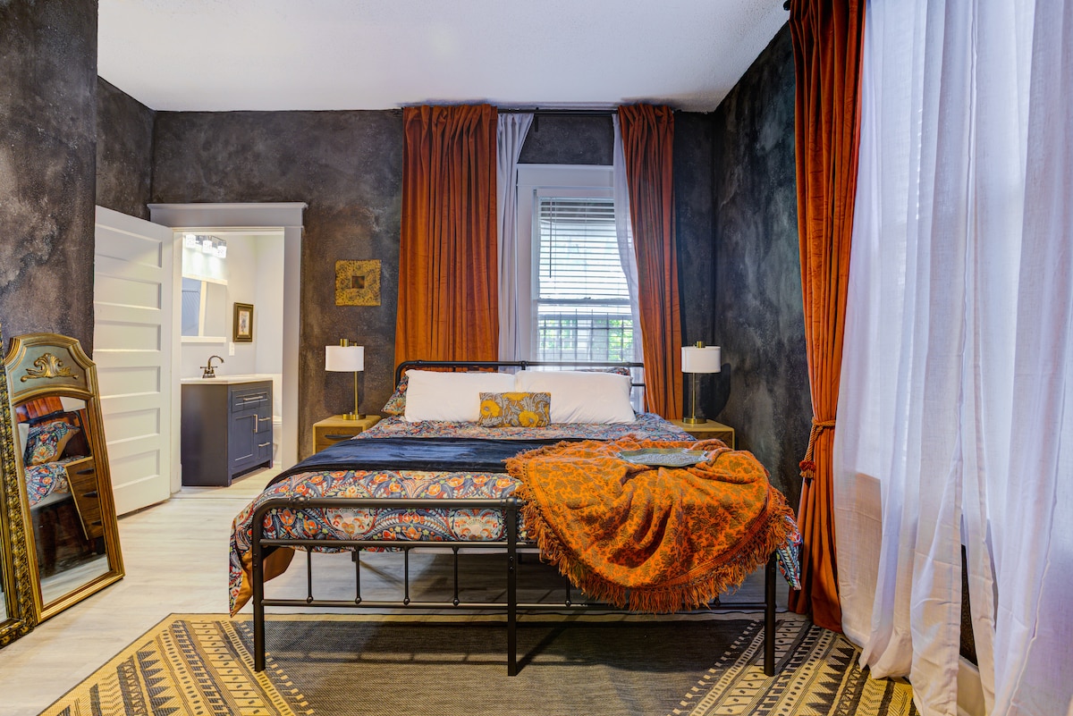 Sumérgete en un pintoresco oasis en el corazón del Victorian Village de Memphis. Disfruta de una estancia encantadora en un estudio tamaño king recién renovado con decoración moderna, situado frente a villas centenarias. Deléitate con vistas cautivadoras, un diseño abierto distintivo y una decoración digna de Instagram. Disfruta de una cocina totalmente equipada, baño completo con bañera y tocador bien iluminado. Con proximidad céntrica a atracciones clave, estacionamiento cerrado gratuito y wifi, tu estancia promete comodidad y encanto.