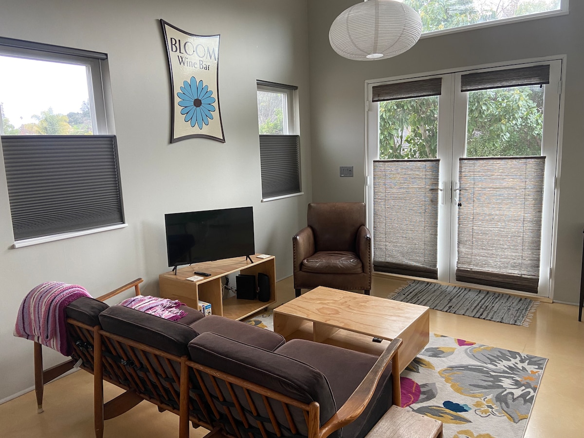 Este nuevo y acogedor estudio es ideal para parejas, aventureros solitarios o viajeros de negocios. Ubicado a pocos pasos del centro de SLO, del distrito ferroviario, de la estación de Amtrak y del transporte público. El estudio ofrece a los huéspedes una vista impresionante de la montaña San Luis desde la terraza privada, cuenta con aparcamiento fuera de la calle, baño, cocina totalmente equipada y una cómoda cama tamaño queen. .