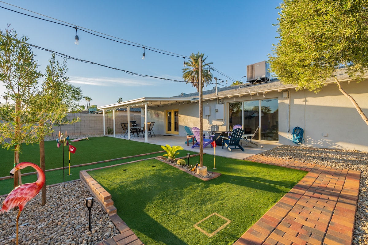 ¡Nueva CASA! ¡Marzo de 2024! ¡PISCINA CLIMATIZADA GRATIS EN INVIERNO Y JACUZZI + CERO TAREAS DE LIMPIEZA! ¡NO PAGUES POR LA CALEFACCIÓN DE LA PISCINA EN EL AIRBNB DE OTRA PERSONA! - NUEVA y hermosa casa remodelada de 3 dormitorios con patio trasero estilo resort, ¡a solo minutos del casco antiguo de Scottsdale! Piscina climatizada gratuita, jacuzzi, chimenea, minigolf, ping pong, ajedrez gigante, wifi más rápido y televisores inteligentes. La casa está totalmente equipada con una barra de café de cortesía, barbacoa al aire libre y el césped más hermoso para que toda la familia disfrute. ¡TV POR CABLE!