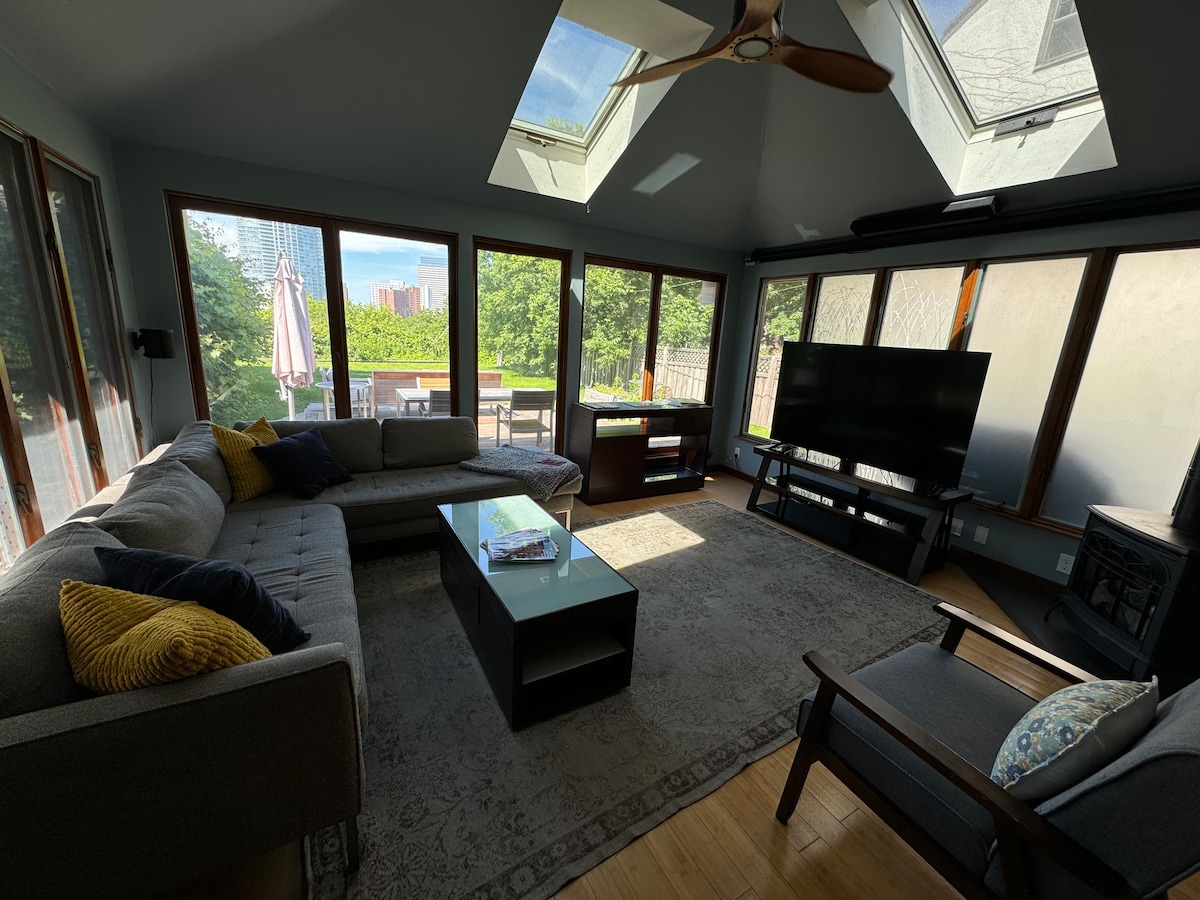 Disfruta de una experiencia de lujo en este céntrico alojamiento de nueva construcción. Cerca de restaurantes, tiendas, lugares de recreación y del lago Bde Maka Ska. Acceso al patio ajardinado profesionalmente con una zona de estar adirondack, chimenea o transmite tu película favorita en la pantalla de cine. Camina, trota o pedalea por los senderos alrededor de los lagos. Algunos de mis establecimientos favoritos, todos a poca distancia a pie: Black Walnut Bakery, Sooki & Mimi, Basement Bar, Uptown Cafe, Granada Theater, Barbette, Amazing Thailand y Tenka Ramen.