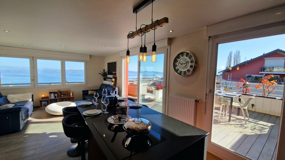 Apartamento excepcional con vistas panorámicas del lago Lemán y las montañas de los alrededores. Sin vecinos, te seducirá con la vegetación y la tranquilidad del entorno. El apartamento está situado en una zona residencial en las alturas de Thonon-les-Bains con vistas al centro de la ciudad. Es ideal para las vacaciones de verano e invierno, ya que tiene cerca las pistas de esquí y el acceso al lago. (2 bicicletas de montaña, 1 piragua, 1 remo disponible, TV con acceso a Netflix)
