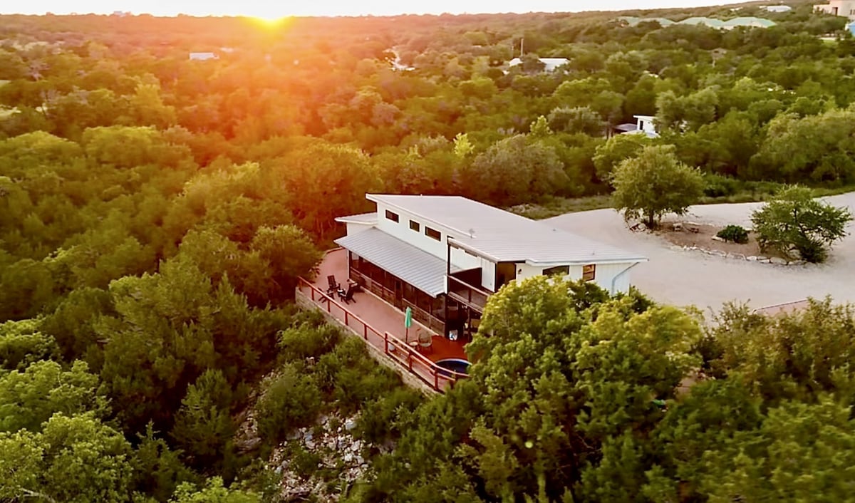 Escape city life,indulge into nature on the secluded porch,take in the views and abundant wildlife! Our custom,European inspired home sits high on a hilltop offering miles of views and gorgeous sunsets.Centrally located 20 min from Austin, 20 min from Wimberley & near many wedding venues.Relax in the hammocks, drink coffee on the patio or do yoga on the porch.Breathe in the fresh air & enjoy.Our goal is to create a memorable experience for you and to share our slice of heaven .