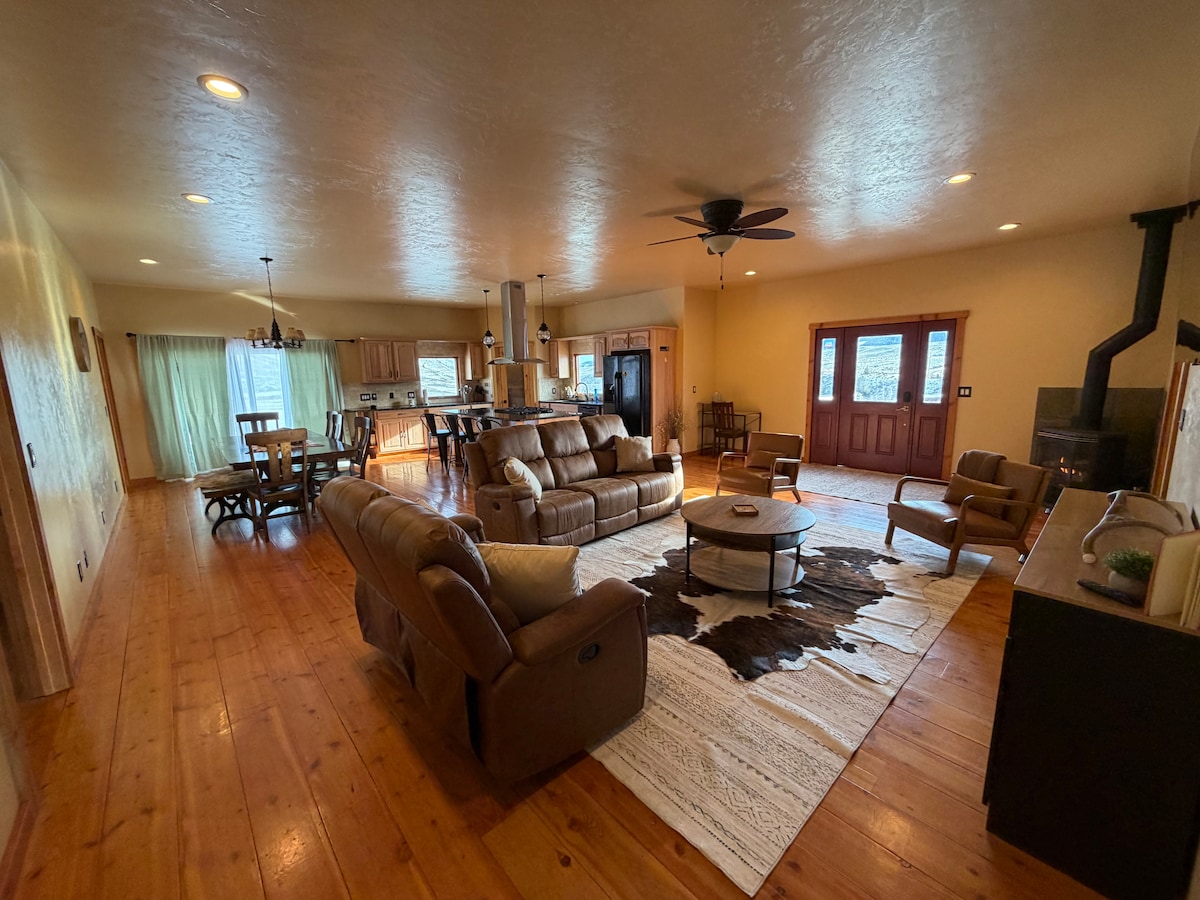 Located at the base of Togwotee Pass near Dubois, just 3 miles from Shoshone National Forest access. Great location for fishing, hiking, horseback riding, wildlife viewing, and UTV or snowmobile riding. Conveniently located off Hwy 26—15 minutes west of Dubois or an hour east of Jackson Hole—this spacious retreat features the comfort of 3 bedrooms, 2 baths, a well-equipped kitchen and dining area, separate laundry, and a mudroom.
