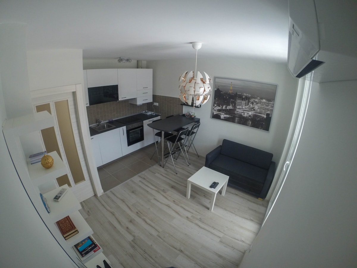 Este encantador apartamento de un dormitorio tiene todo lo necesario. Está cerca de muchas playas maravillosas y de un cine recién inaugurado, tienda de comestibles. La panadería y la pizzería están justo al otro lado de la calle, en el complejo Dvori Lapad. El departamento está separado de la casa principal en el primer piso. Hay una cocina, comedor, baño, dormitorio doble y una terraza. El apartamento está equipado con aire acondicionado, TV e internet inalámbrico.