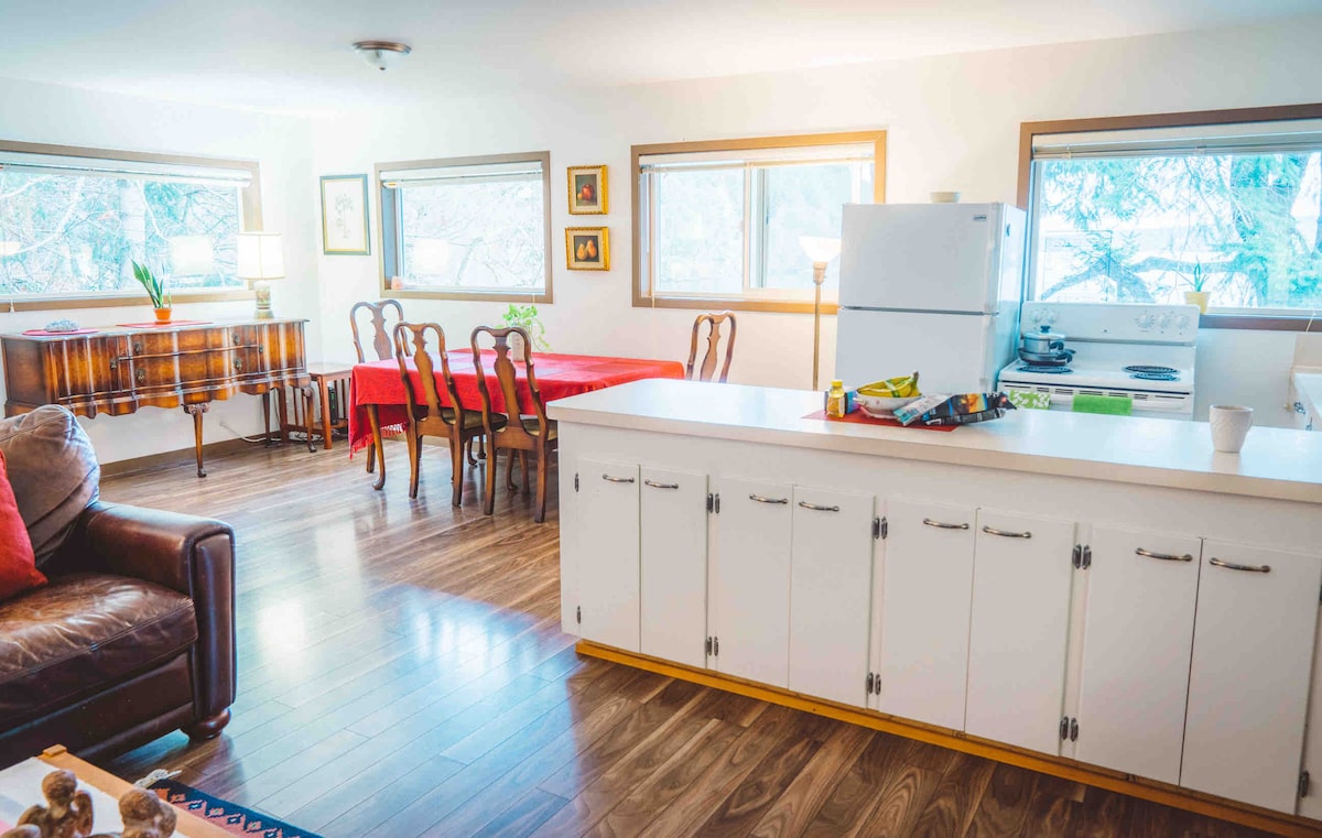 Tómate un descanso para relajarte en la hermosa bahía de Cowichan, en la isla de Vancouver, a unos 40 minutos en coche de Victoria BC. Nuestra suite renovada (en junio de 2023) se encuentra al final de una carretera sin salida y está a solo 5-10 minutos a pie del pueblo, donde encontrarás una fabulosa panadería artesanal orgánica, tiendas de artesanía, restaurantes, un museo, un pub, una pequeña tienda de comestibles/licorería y una popular heladería/tienda de dulces. Alquiler de kayaks/paddle-board (de temporada) y excursiones de avistamiento de ballenas. Hospital del distrito de Cowichan a 15 minutos en coche.