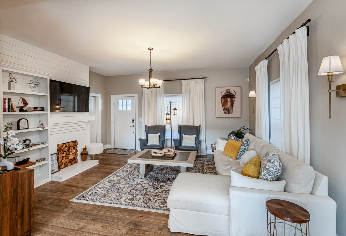Disfruta de una estancia a 3 millas de Main Street y el Swamp Rabbit Trail. Perfecto para una escapada romántica o un retiro en solitario, disfruta de una acogedora chimenea eléctrica, una espaciosa cama tamaño king y una cocina totalmente equipada. La terraza cubierta con luces de cuerda y comedor al aire libre prepara el escenario para relajarse por las mañanas y noches íntimas. Diseñado cuidadosamente para la comodidad, esta escapada tranquila te mantiene cerca de las principales atracciones.