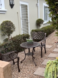 Fully self-contained garden cottage that leads onto a beautiful shared garden and pool. Open the stacking doors and let the garden and sound of the waves flood into the peaceful space. Or close them and take advantage of the aircon. Perfect as a base or for work. It is modern and extremely comfortable and has the option to be serviced daily. Let us know,we'll happily stock it with essentials. Close to popular beaches, and walking distance to shops and restaurants. Charges are per person.