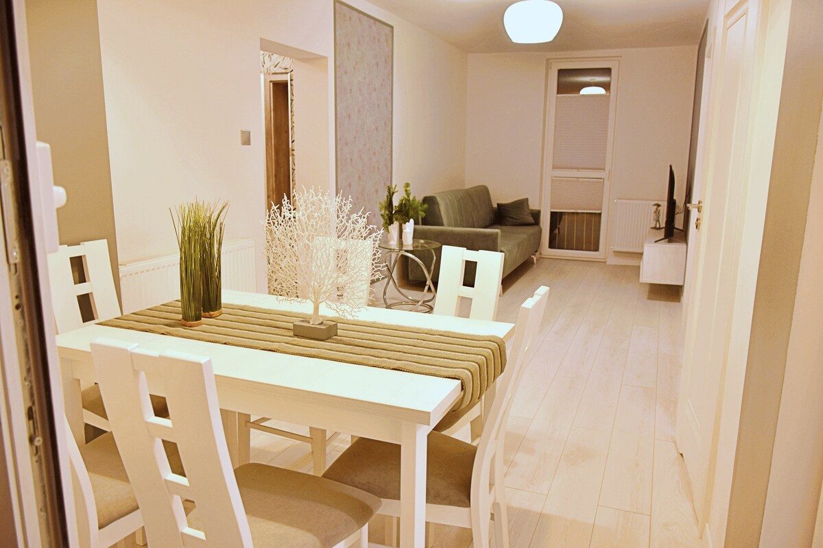 Hola. Tengo un departamento de dos dormitorios que está ubicado en el centro de Kudowa. El departamento es una sala de estar, un dormitorio más una cocina. Me comprometo a contar con huéspedes sin problemas para asegurarme de que tu estadía sea un viaje de ida y vuelta. Aparte de Kudowa, cerca de Kłodzko, Duszniki, Polanica, Błędne Skaly, Skalne Miasto, Szczeliniec, Nachod, Praga. Las llaves se recogerán después de la información telefónica previa. Añadiré que en nuestro departamento no tenemos internet, solo televisión terrestre. Te animo a hacer preguntas. :)