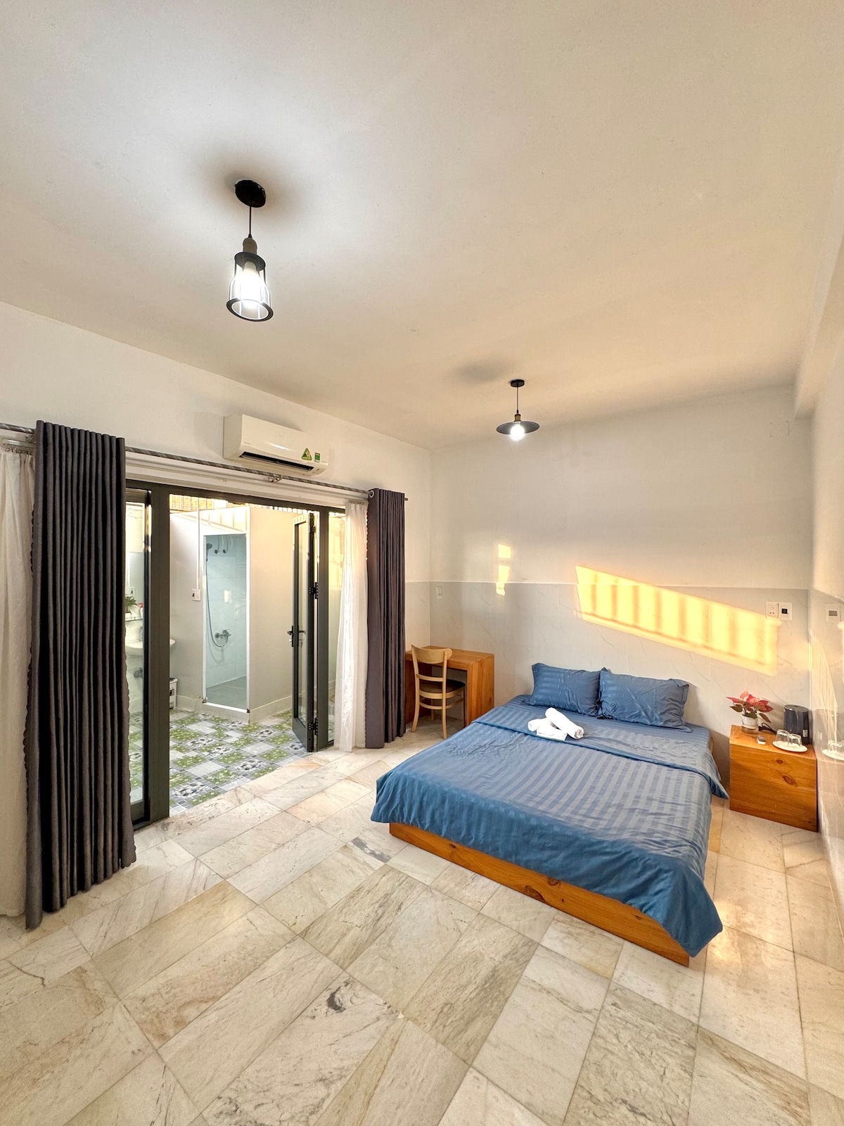 ¿Buscas un ático grande con vistas a las colinas de Ba Na? Este ático de más de 100 m2 y una gran terraza de 50 m2 es el lugar perfecto para pasar el tiempo y trabajar a distancia. Wifi fuerte, gimnasio, piscina de entrenamiento donde realmente se puede nadar (3,6 x 18 m). El domaine d'Aba también es nuestro hogar, viniendo de Francia, quisimos construir una privacidad pero un lugar amigable para nosotros y nuestra familia. Ubicado cerca de la APU, la Universidad Americana, la Universidad FPT, no muy lejos del río Co y de la azotea, la brisa marina.