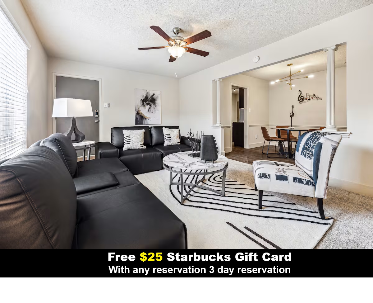 ¡Experimenta el lujo moderno a pocos minutos del centro de Houston! Esta nueva casa de 3 dormitorios y 3 baños está diseñada pensando en familias y grupos, y ofrece un diseño elegante y servicios aptos para niños. Relájate en espacios con suelo de mármol o disfruta de la diversión al aire libre con fogata, barbacoa y columpio. Ya sea que estés viendo un partido, explorando la ciudad o relajándote en casa, este Airbnb es perfecto para todos. Cocina totalmente equipada, lavadora/secadora y artículos básicos para bebés. ¡A solo 15 minutos del aeropuerto! Wifi de alta velocidad incluido.