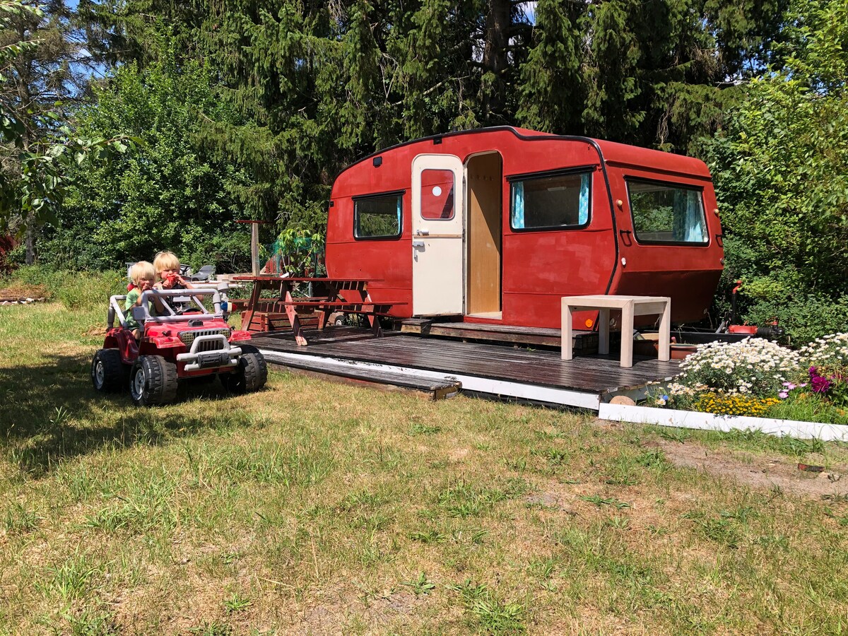 Pequeña caravana vintage en un entorno estupendo.