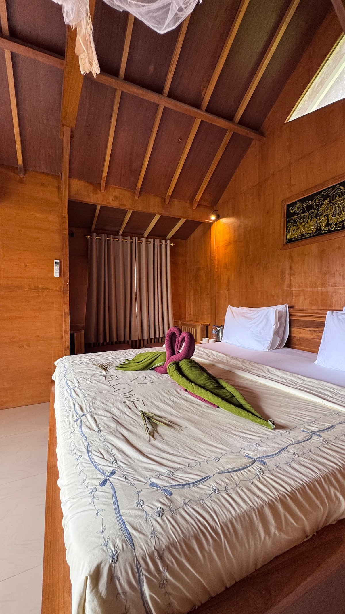 “Wildwood Cottage Tetebatu ofrece un refugio tranquilo rodeado de campos de arroz y suaves sonidos de la selva. Construido con materiales naturales y cálidos detalles de madera, es una escapada perfecta para los huéspedes que buscan comodidad, naturaleza y el verdadero ambiente de Tetebatu. Simple, tranquilo y maravillosamente cerca de la vida local”.