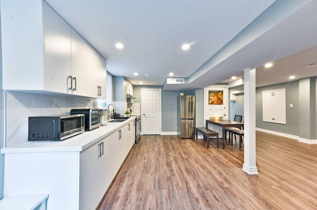 ¡Apartamento totalmente renovado, moderno, luminoso, lujoso y espacioso (más de 1800 pies cuadrados) de 2 dormitorios, 2 baños, techo alto, entrada independiente y patio para tu próximo hogar acogedor lejos de casa! ¡Con valoración de 5 estrellas y entre el 5 % de los mejores alojamientos en AirBnB! Lo más céntrico de la zona metropolitana de Toronto. Estarás cerca del aeropuerto de Pearson, la autopista 401/404/407, centros comerciales, tiendas de comestibles y una gran variedad de restaurantes de moda, cines, parques y rutas de senderismo/bicicleta por todas partes. ¡Reserva con confianza!