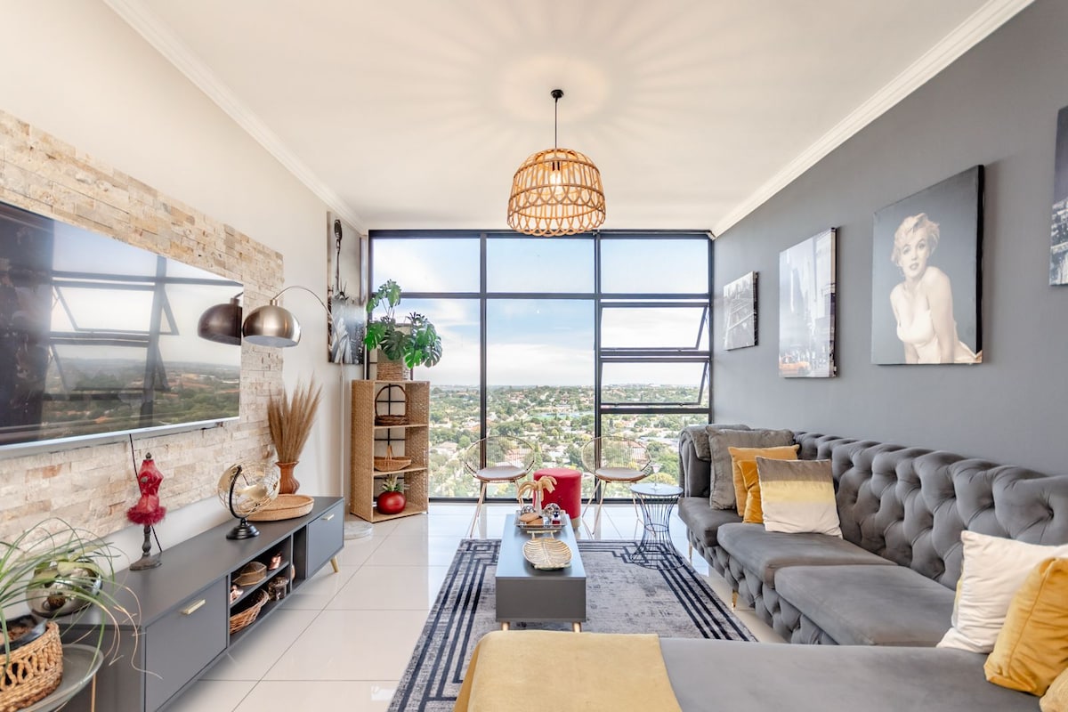 Bienvenido a nuestro moderno apartamento, diseñado con elementos modernos y atención al detalle para tu comodidad. Disfruta de las impresionantes puestas de sol de Jozi con vistas panorámicas desde el octavo piso. Esta unidad cuenta con un inversor totalmente gestionado y automatizado, con internet ininterrumpido, luces y TV y enchufes durante la reducción de carga. Ideal para profesionales, incluye un espacio de trabajo dedicado y fibra de alta velocidad sin límites. Experimenta la combinación perfecta de estilo, comodidad y conveniencia en este excepcional apartamento.