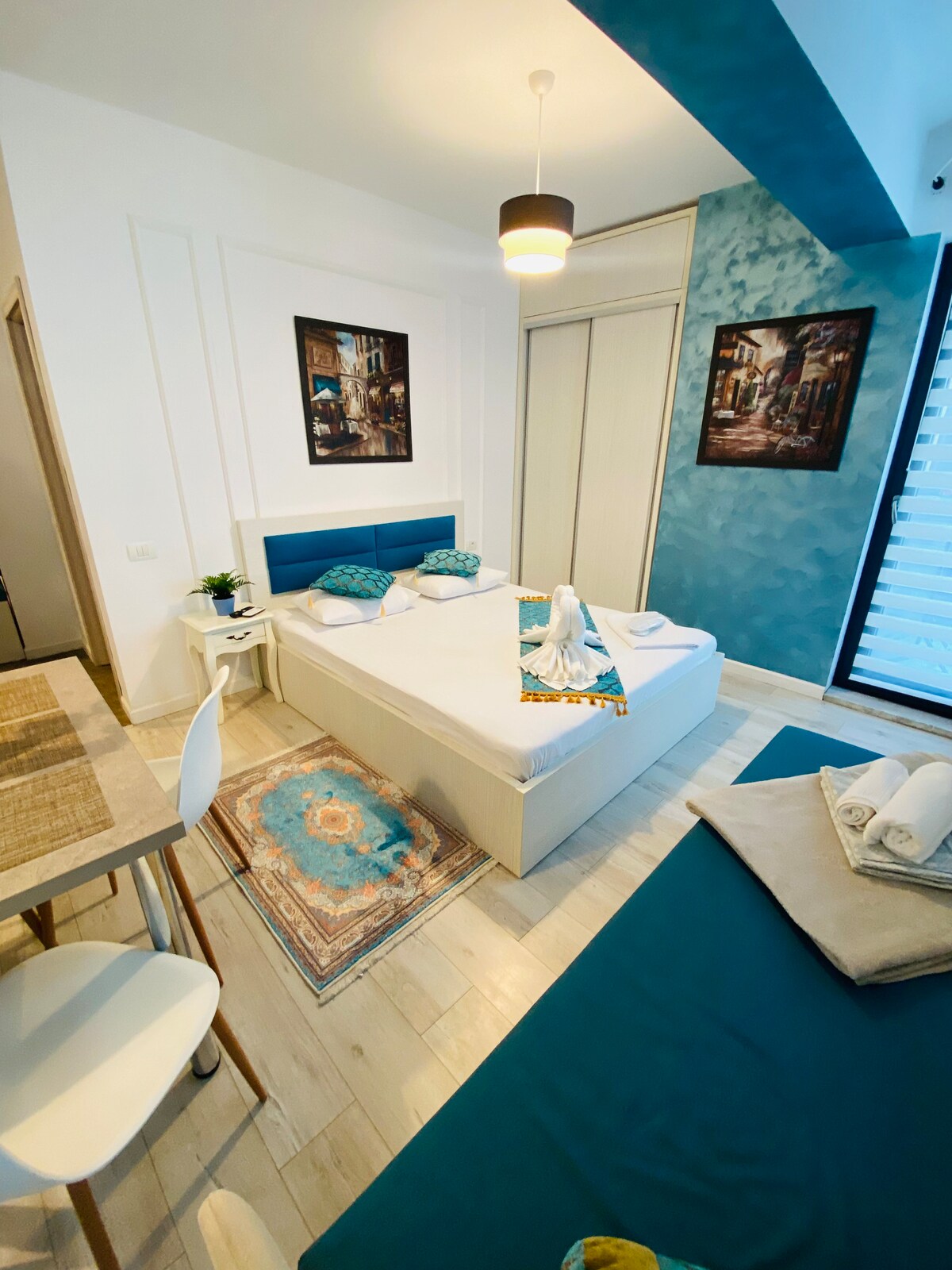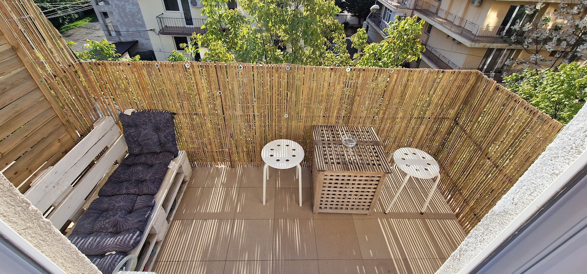 Bright and newly renovated studio, perfect for a relaxing holiday in Eforie Nord. Located near Techirghiol Lake and just a 15-minute walk from Belona Beach, it offers a modern private bathroom, fully equipped kitchenette (electric hob, fridge, coffee machine) and a washing machine. Ideal choice for couples or families, close to restaurants, shops, and main attractions.