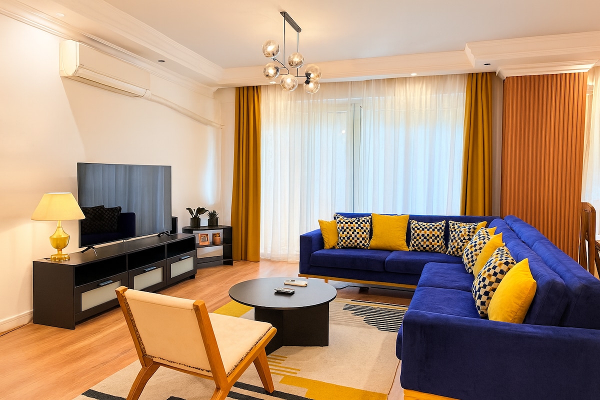 Welcome to our 3-bed, 3-bath, 220 sqm Maadi gem! Enjoy open views, a fully equipped kitchen, a 55" Smart TV, and lightning-fast Wi-Fi. Conveniently located near shops and restaurants, Carrefour and 50 Hub Mall are just 2 minutes away. Explore Maadi's charm and Cairo's attractions from this stylish and central retreat. Perfect for families or groups exploring Cairo's vibrant scene. No single male guests allowed. Ladies, Couples & Families only.