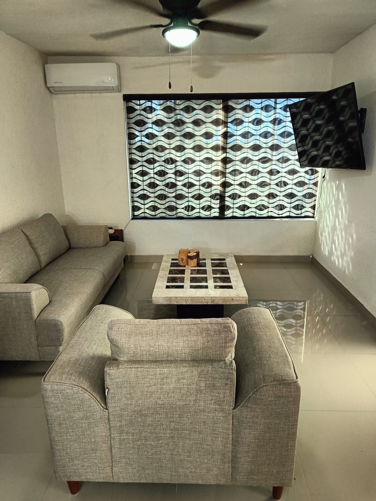 Mi prioridad es que obtengas comodidad, buena ubicación y seguridad a un precio económico, para que disfrutes al máximo de una estancia 5 estrellas en nuestra bella ciudad de La Paz. Cerca de plazas comerciales, farmacias, restaurantes, gasolineras, hospital, etc. 2 A/C, pantalla de 55” roku, con Netflix incluido. Espacio para trabajar con monitor smart de 27”, silla ejecutiva, plancha, lavadora, boyler, artículos de cocina, cafetera, microondas, tostador, estufa eléctrica y refrigerador.