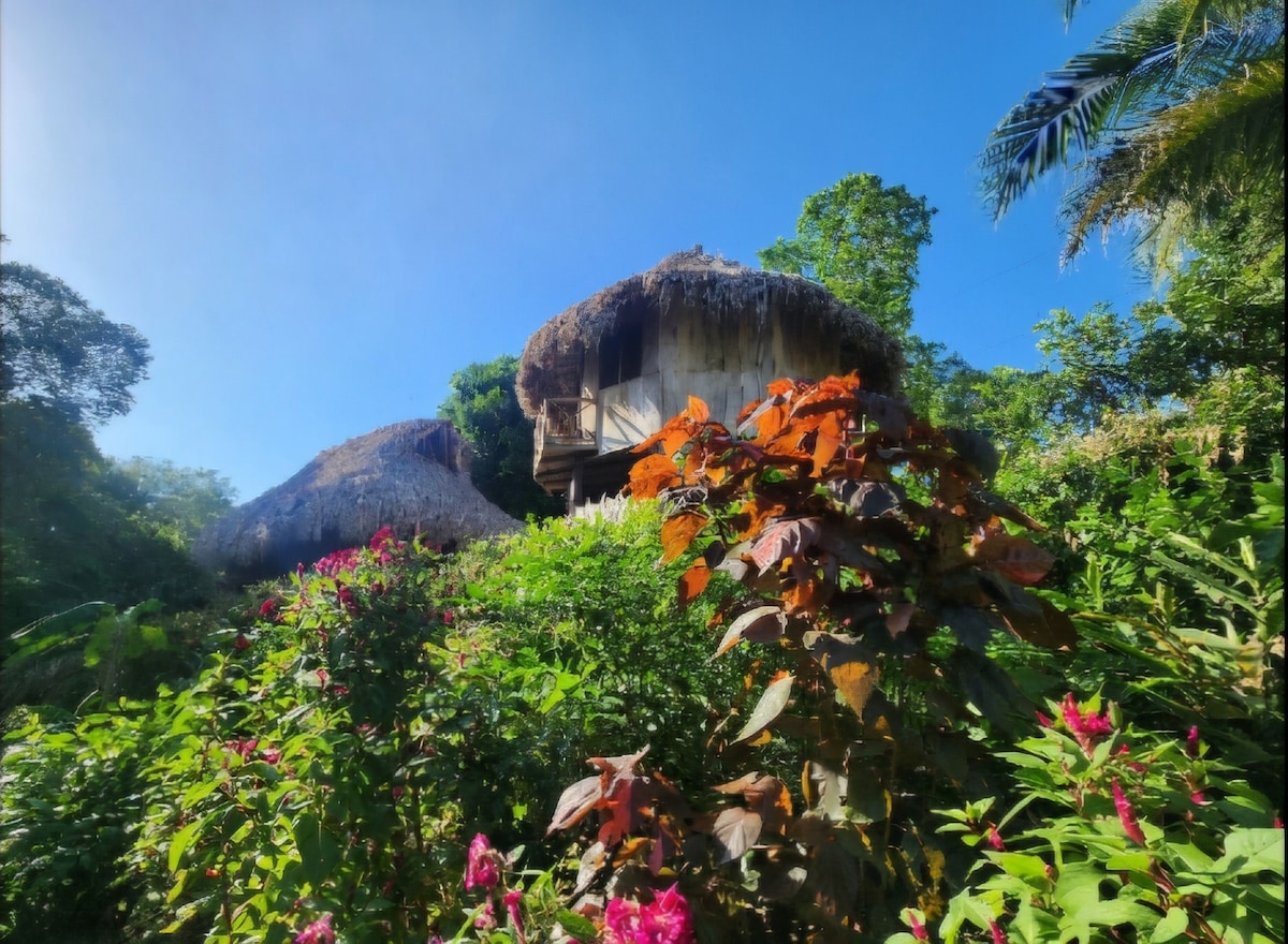 Jungle Casa privada para 1 a 3 personas, elevada sobre la selva, ámplia terraza en el segundo piso y vista al MAR. Estamos a 2 min en moto del Parque Tayrona (Zaino). Zona muy tranquila, lejos del ruido de la vía, casa autosostenible pero cómoda, energía solar, fuera de la red, Wifi Starlink. Somos anfitriones en sitio y te ayudamos con tours, actividades, transporte, domicillios y secretos locales. Incluye libre acceso a las playas más cercanas y hermosas de la zona (11 min caminando).