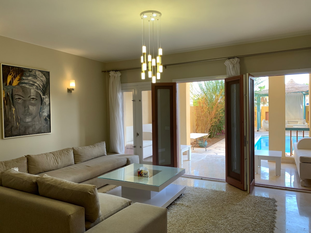 Apartamento espacioso y alegre con capacidad para 6 personas cómodamente, situado en la única comunidad frente a la playa de Gouna “MANGROOVY”. Playa larga y 6 piscinas. A 3 minutos a pie de la playa y a 10 minutos del puerto deportivo. Acceso privado a la terraza de 100 m en la azotea amueblada con acogedores muebles de exterior con vistas a la enorme piscina. La terraza es una gran característica de este apartamento único. El estilo interior es acogedor para garantizar disfrutar de unas relajantes vacaciones. El departamento es perfecto para parejas y familias más grandes.
