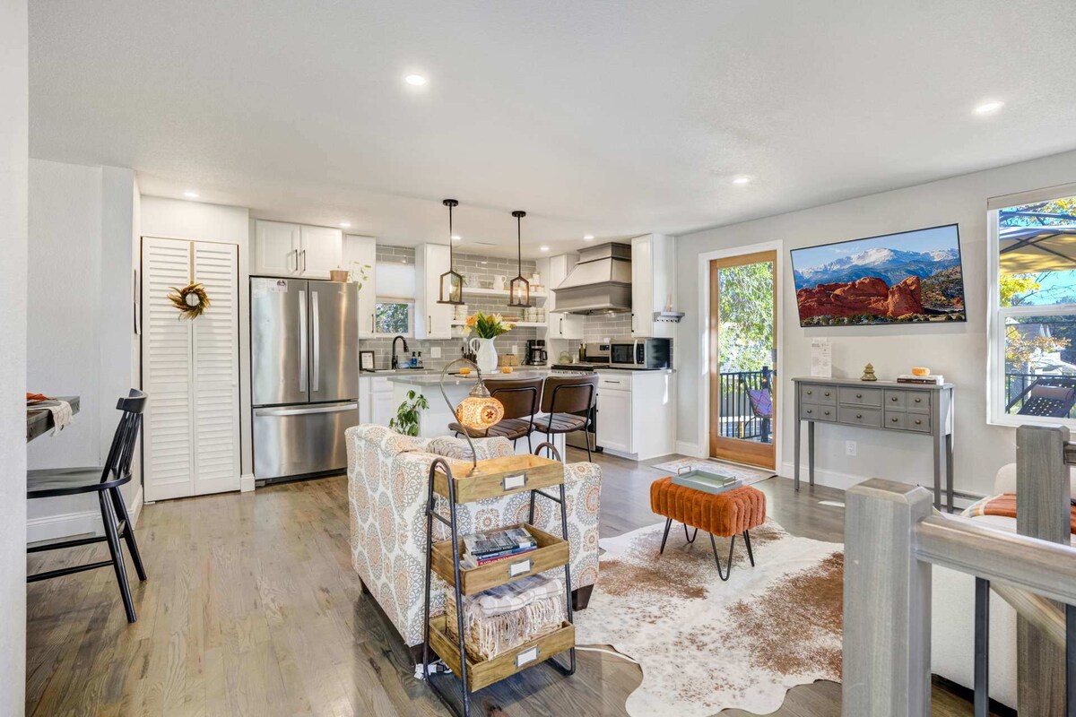 Encuentra consuelo en esta residencia revitalizada con buen gusto. La casa de vacaciones cuenta con grises neutros en todas partes, toques de color, una sala de estar de planta abierta, una acogedora chimenea eléctrica y una amplia terraza. La casa tiene todo lo necesario para que tu estancia en Colorado Springs sea agradable. Al entrar, serás recibido por la gran sala de estar y la hermosa cocina con sofá cama, chimenea y TV inteligente, donde podrás relajarte viendo la televisión por cable. La cocina completa tiene todo lo necesario para cocinar tus propias comidas con una nevera/congelador de tamaño completo con máquina de hielo, horno, microondas, lavavajillas, mucho espacio en la mesa/encimera, una cafetera Keurig con cápsulas k-cups, una mesa y cuatro sillas. La sala de estar está conectada con el dormitorio, lo que da una sensación de estudio, con una cómoda cama tamaño queen y un armario. En el primer baño de la planta principal podrás encontrar una hermosa ducha de vidrio con lavadora y secadora. Para hacer la vida más fácil, tenemos jabón para la ropa, muchas toallas, champú, acondicionador y jabón corporal. Hay un conjunto de escaleras en la sala de estar que conducen al segundo dormitorio y baño. El dormitorio de arriba, espacioso, tiene dos cómodas camas individuales, con lámparas de lectura separadas. Junto al dormitorio de arriba hay un segundo baño completo, con una gran bañera de hidromasaje. Otros servicios incluyen wifi de alta velocidad para todas tus necesidades de trabajo/entretenimiento, así como calefacción y aire acondicionado para que estés cómodo durante todo el año. El anfitrión vive en la propiedad y está dispuesto a ayudarte para que tu estancia sea lo más placentera posible. Respeta tu privacidad, interactuará contigo por teléfono. Hay muchas cosas a poca distancia a pie, como el Centro de Entrenamiento Olímpico, el Memorial Park y mucho más. La casa también está a poca distancia en coche del centro de la ciudad, Pikes Peak, el Jardín de los Dioses, varias caminatas geniales y otras actividades. Permiso STR0447