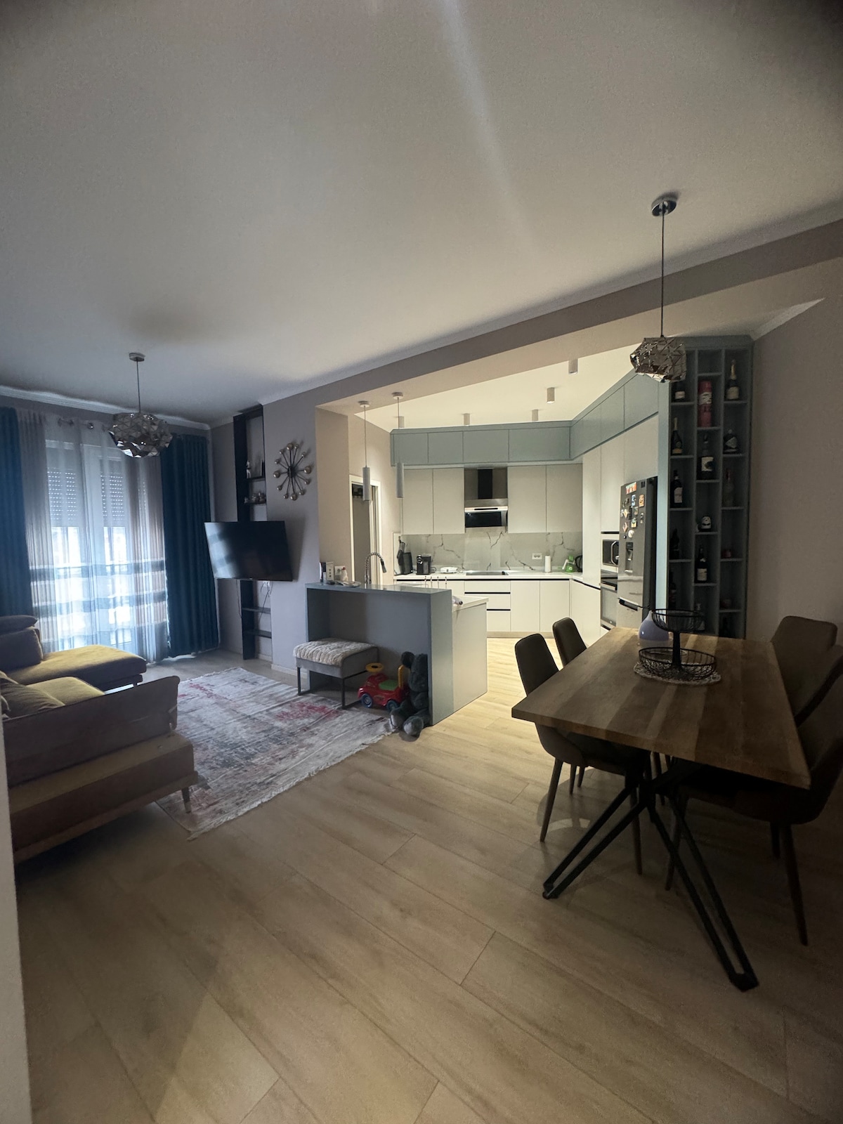 El espacio es luminoso, cómodo y está totalmente equipado para hacerte sentir como en casa, ya sea que estés de visita para un viaje corto o una estancia más larga. El apartamento es perfecto para familias, amigos o viajeros de negocios, y ofrece una terraza privada con una hermosa vista, comodidades modernas y fácil acceso a cafés, restaurantes y tiendas locales. Situado en el distrito de Komuna e Parisit, el apartamento está rodeado de acogedores cafés y restaurantes para familias.