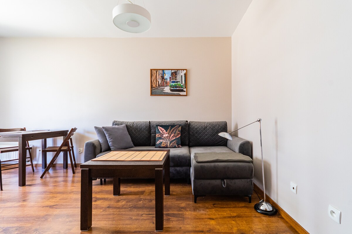 Un apartamento en la planta baja con estacionamiento gratuito, elegantemente decorado, equipado con electrodomésticos, electrónica, wifi gratuito y plataformas de streaming. Situado en un barrio tranquilo y apacible con acceso a tiendas (min. Frog, Biedronka, Sokrotka). Tiene un dormitorio con una cama grande, un balcón amueblado, una sala de estar con TV y un cómodo sofá con función de dormir, una cocina, un baño con ducha. Se proporcionaron toallas limpias, ropa de cama y otros servicios. Cerca de parques infantiles, estación de tren, estación de autobuses, pabellón deportivo, gimnasio, comunicación.