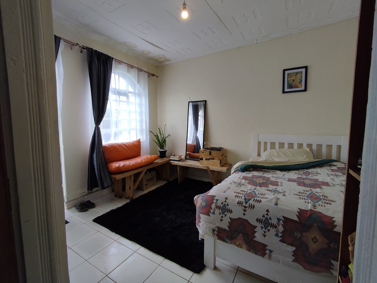 Estudio luminoso de 1 habitación con cocina, ducha privada y agua caliente. Disfruta de Internet de alta velocidad, estacionamiento gratuito y un ambiente relajado junto al río a solo unos pasos del puente del río Sosiani. Check-in asistido por el cuidador; desayuno a pedido. Ideal para personas que viajan solas, parejas o huéspedes de negocios. A solo 5 minutos en auto de las tiendas, cafés y mercados de Eldoret CBD. ¡Reserva tu refugio junto al río hoy mismo! * Wifi de alta velocidad y espacio de trabajo. * Estacionamiento seguro y gratuito en el lugar. * Paseos matutinos junto al río