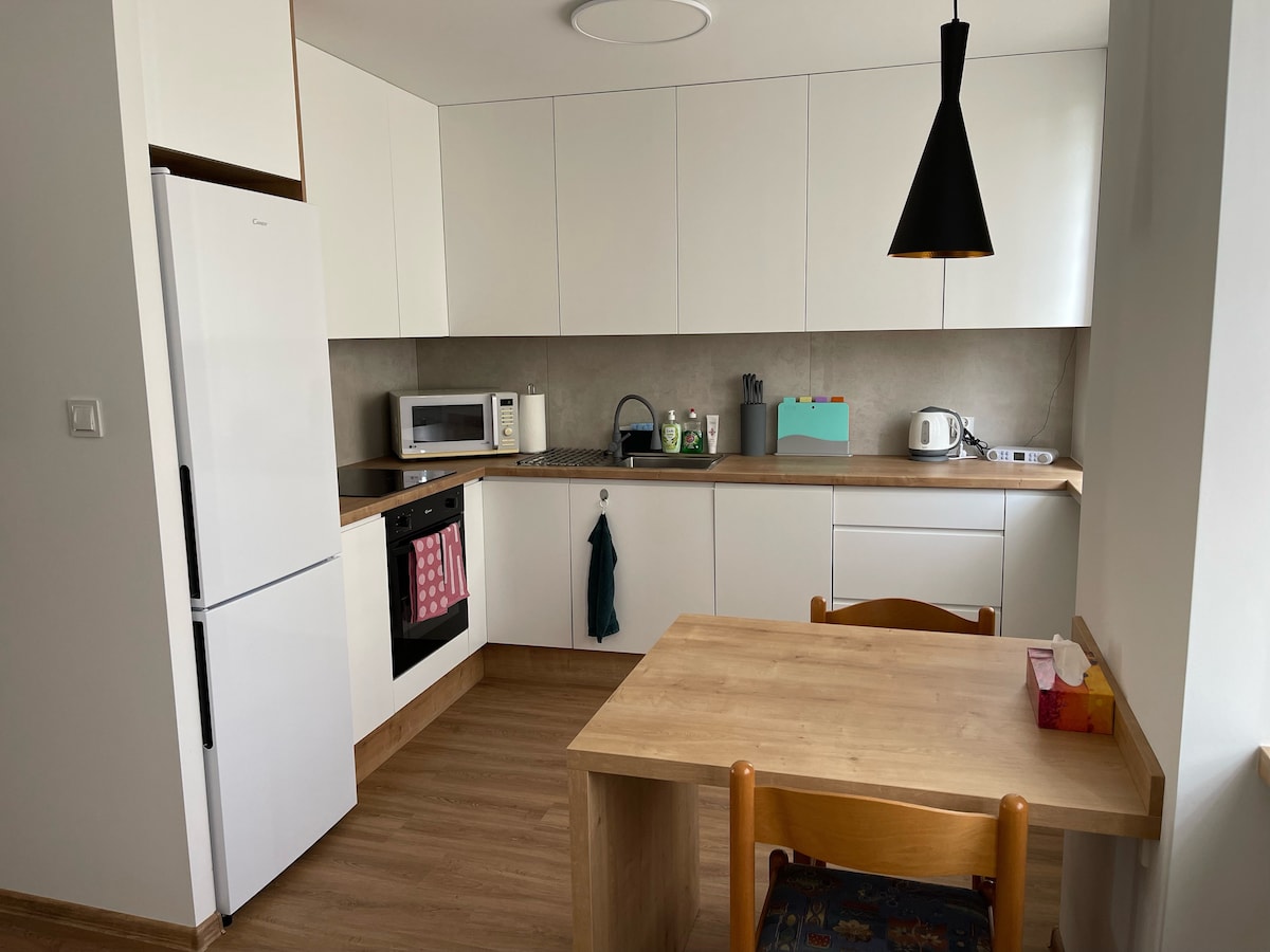 Regálese un descanso y relájese. Elegante apartamento en una zona tranquila a 1,5 km del centro de la ciudad con un amplio balcón y plaza de aparcamiento gratuita. Registro de entrada autónomo. Situado en el primer piso de un moderno edificio de tres plantas con ascensor. Equipado con nevera, pequeña cafetera, lavadora, secadora, TV plana, wifi, cama muy cómoda. Un excelente punto de partida para explorar la ciudad y sus alrededores. A 1 km de PIASKOWNICA, un lugar para los amantes de la conducción todoterreno. Espacio para guardar varias bicicletas.