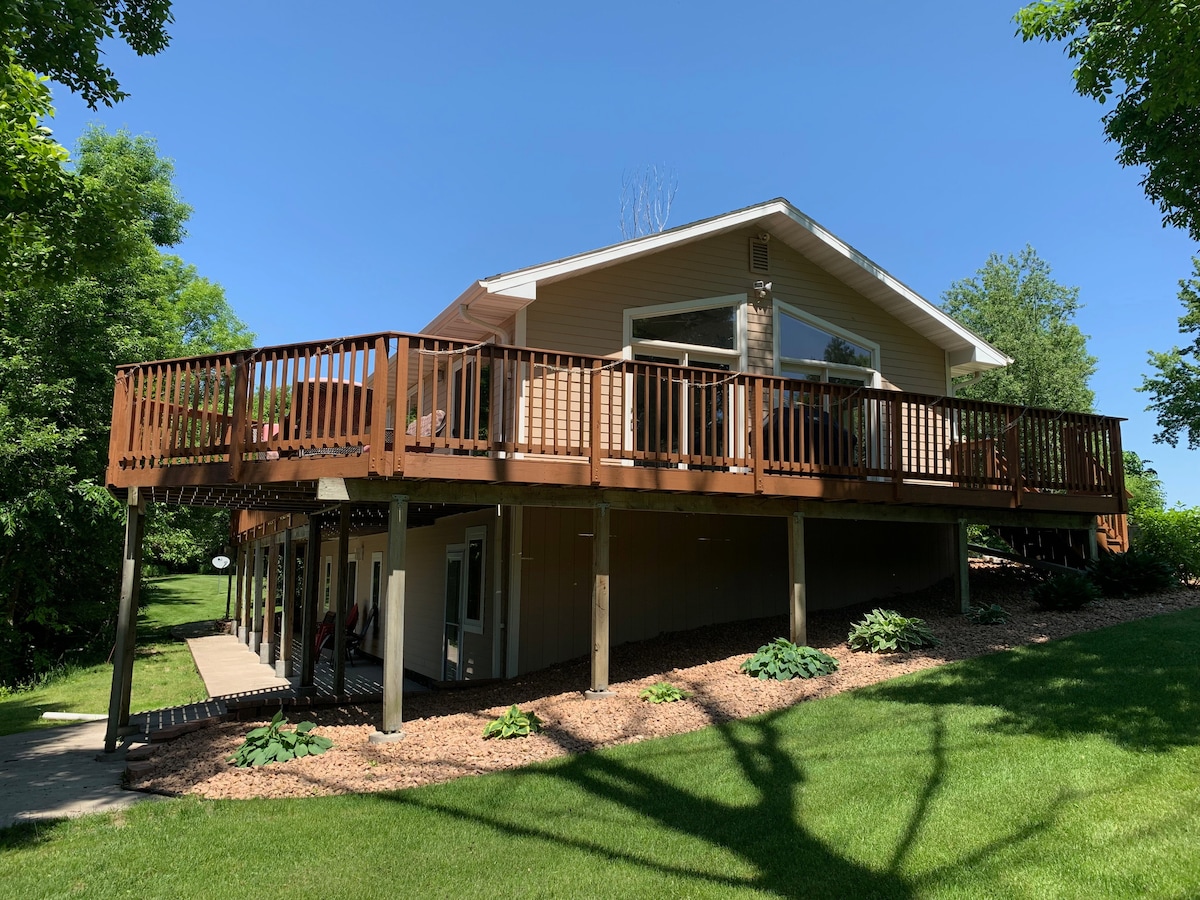 Estarás en lo alto de una colina con impresionantes vistas al lago desde casi todas las ventanas. Esta casa llena de luz ofrece el mejor refugio. Disfruta de tablas de remo, kayaks, colchonetas de natación y flotadores, ¡todo incluido! Para los entusiastas de la pesca, el muelle es un lugar perfecto para pescar. ¡Relájate y empápate de la serenidad del entorno! Estamos ubicados a 50 minutos de las Ciudades Gemelas, por lo que no tardarás en relajarte y disfrutar de la hermosa puesta de sol desde tu terraza y beber tu bebida favorita.