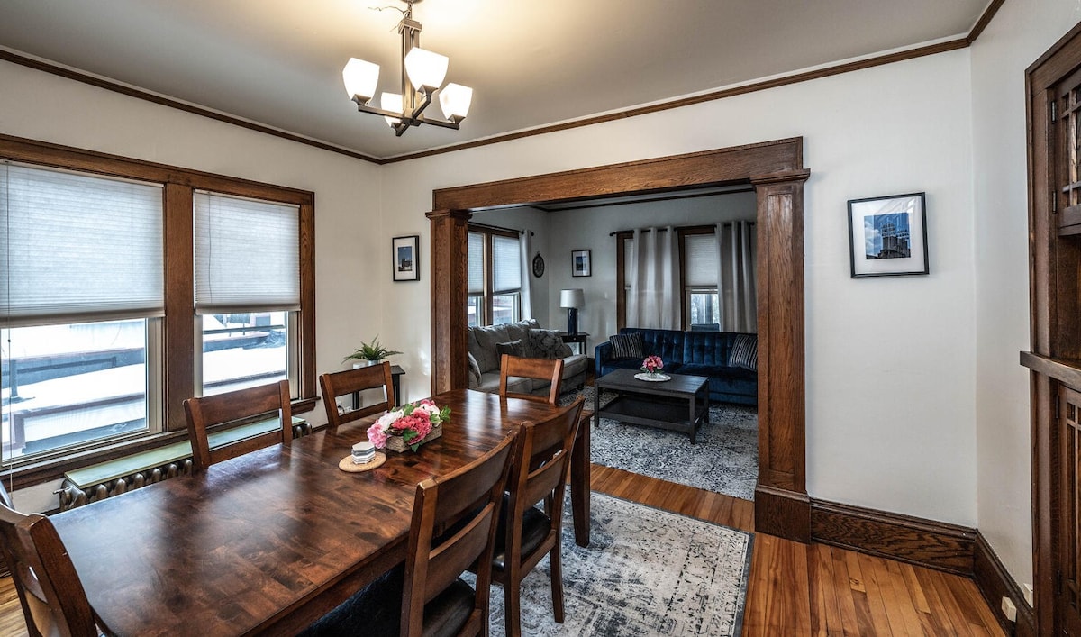 ¡Te damos la bienvenida a tu acogedor refugio en el noreste de Mineápolis! Esta encantadora casa de dos dormitorios captura la esencia del barrio con su decoración única y su ambiente cálido. La sala de estar es acogedora, perfecta para relajarse después de un día de exploración. La cocina totalmente equipada hace que la preparación de la comida sea muy fácil, mientras que el comedor ofrece diversión y funcionalidad. Sal a relajarte en el jacuzzi privado bajo las estrellas, rodeado del encanto local, ¡ideal para una escapada romántica o un pequeño retiro familiar!