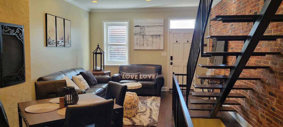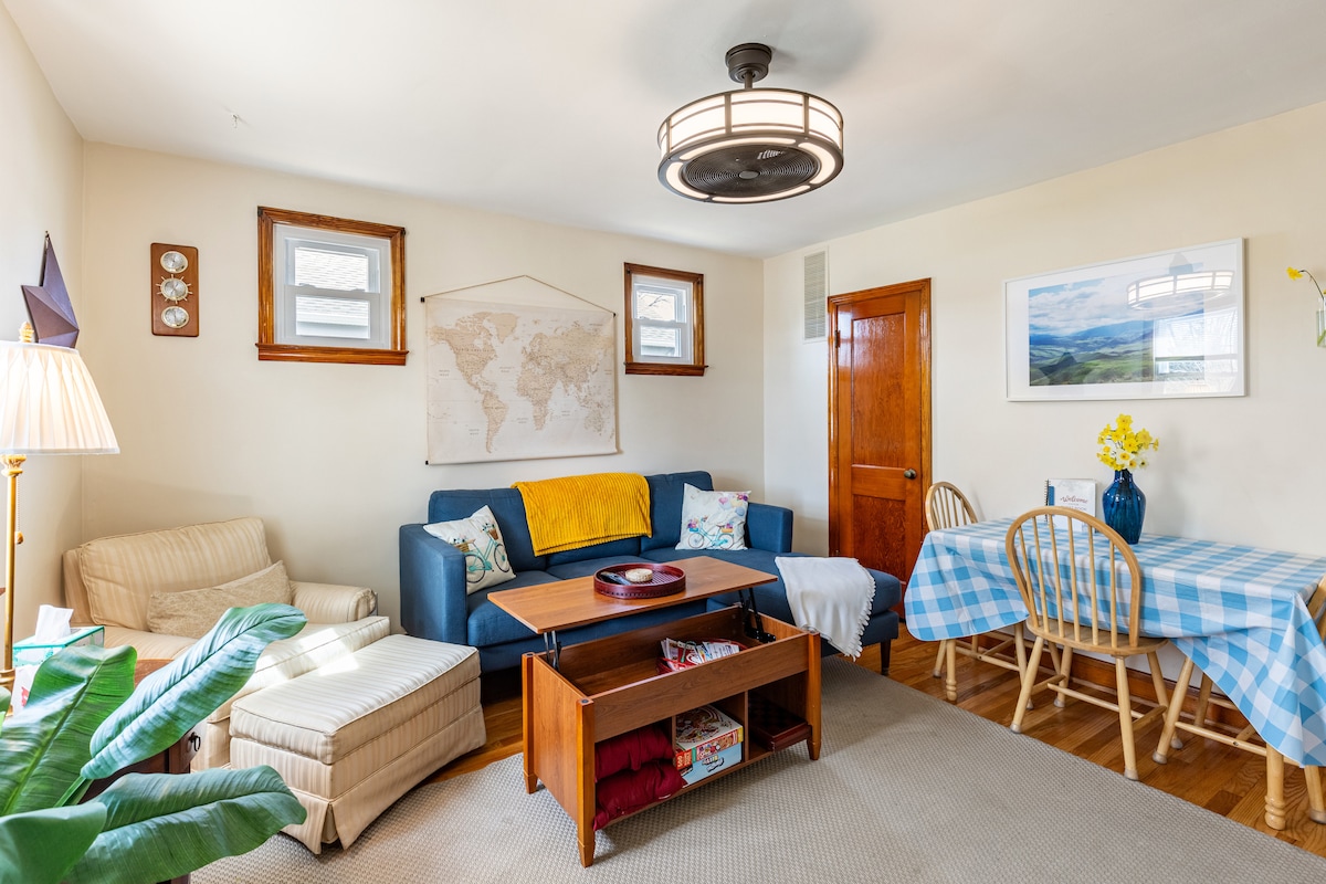 ¡Disfruta de tu estancia en esta acogedora casa Tudor recién remodelada en un barrio histórico y arquitectónicamente ecléctico en Catonsville, MD! Estarás cerca de todo, pero lo suficientemente lejos como para disfrutar de un viaje relajante. La casa cuenta con cuatro dormitorios, dos baños completos, una cocina totalmente equipada, un sótano completo y techos de 18 pies en el nivel principal. Disfrutarás de televisores inteligentes de 65, 42 y 32 pulgadas en toda la casa. Además, una suite principal privada en la planta superior con cama tamaño king, zona de estar con sofá y estación de trabajo.