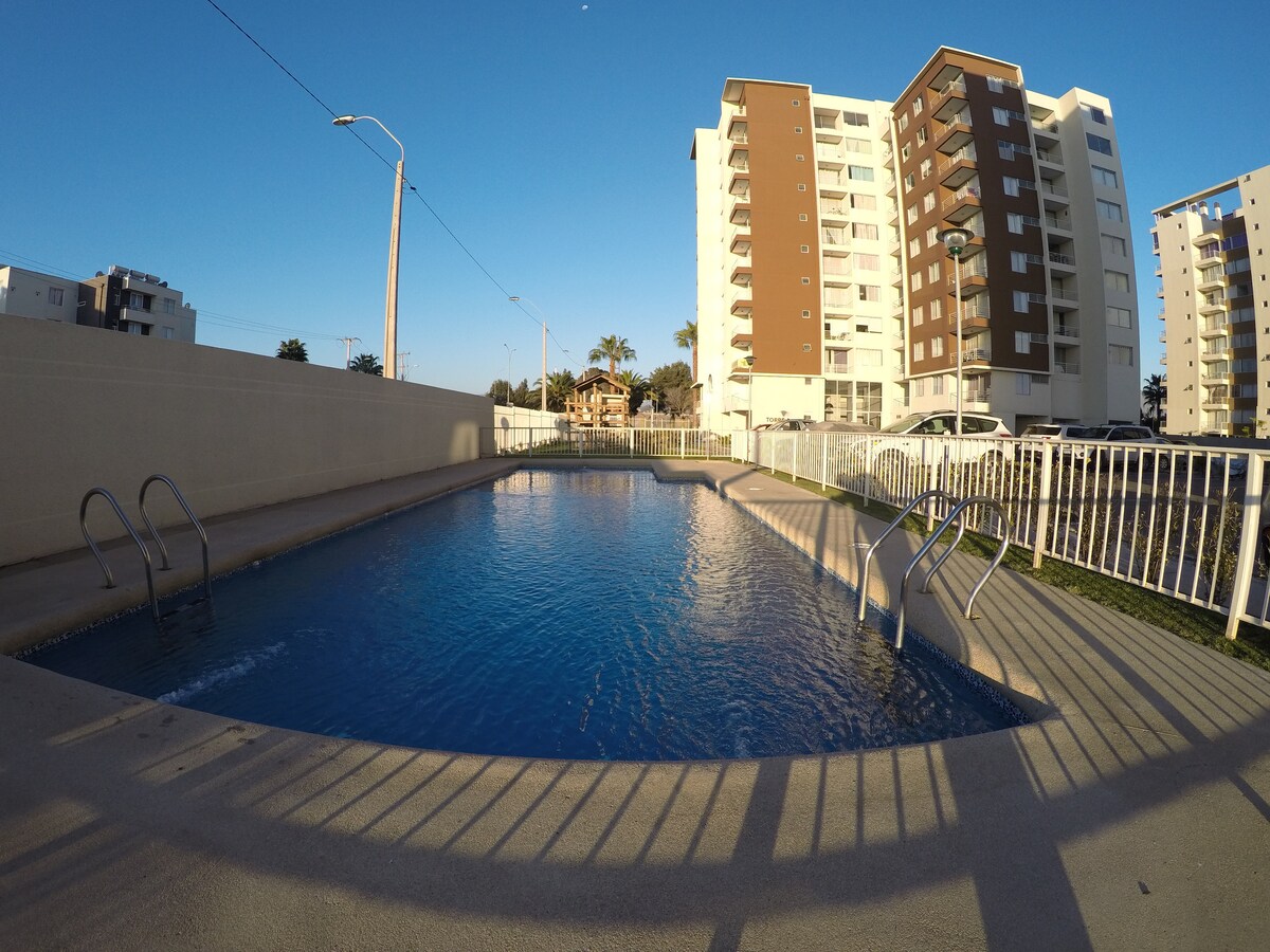 Departamento ubicado en Avenida del Mar de la ciudad de La Serena, en un tercer piso, a 470 kilómetros de la capital de Chile, Santiago Desde su terraza podrás ver el azul del mar y las más preciosas puestas de sol. Tienes una extensa playa para disfrutar caminando o bañándote y encontrarás muy cerca buenos restaurantes y el Cacino Enjoy de Coquimbo. Puedes disfrutar de piscina exterior y un lindo prado. El equipamiento del departamento además de la cama de dos plazas cuenta con sillón cama.