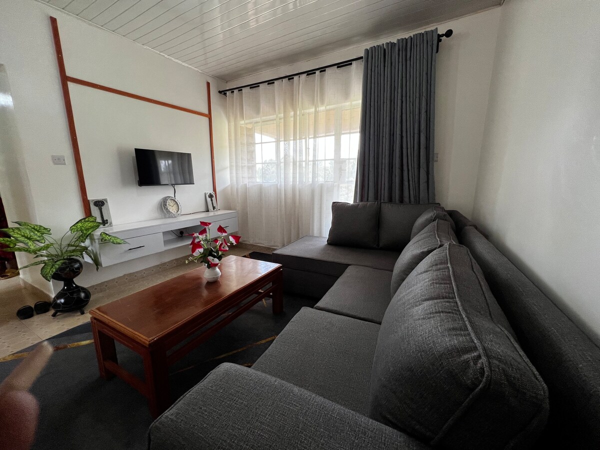 Te damos la bienvenida a un espacio que es más que un lugar para alojarse. Es donde la elegancia, la comodidad y la creatividad cobran vida. Nuestra casa bellamente diseñada ofrece una mezcla única de estilo y tranquilidad, con el impresionante telón de fondo del monte Kenia. Ya sea que estés aquí para explorar, por trabajo o simplemente para relajarte, este es tu santuario para pura magia y recuerdos épicos Ubicado en el tranquilo y frondoso suburbio de Gakwegori a lo largo de la autopista Embu-Meru, a solo 3 km de la Universidad Embu y a solo 10 minutos de la ciudad de Embu.