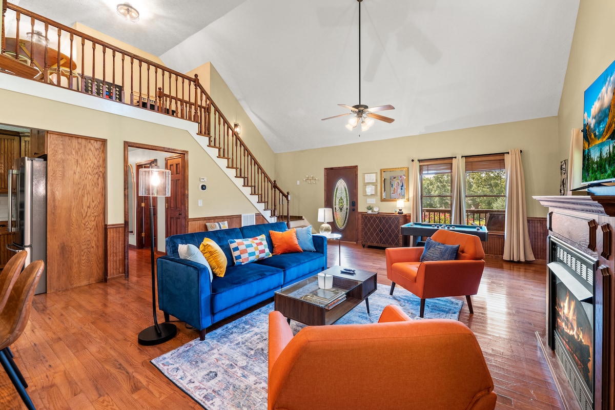 Cabaña de cedro con interior moderno • Porche delantero perfecto con columpio y 4 mecedoras • Se admiten perros (50 USD por 1 perro/100 USD por 2 perros por estancia/máximo 2) • Mesa de billar vintage • Hamaca en el patio trasero, mesa de picnic, 2 columpios, chimenea y juego de tejo • Juega a Ms Pacman (60 juegos), 4 en raya, juegos de mesa • Tocadiscos • Cocina bien equipada • Copas de vino • Solarium con sillas • 2 camas tamaño king y 1 cama completa XL • 4 televisores inteligentes • Paisajismo exuberante • Los fines de semana se reservan rápidamente, ¡pero tenemos excelentes tarifas entre semana!