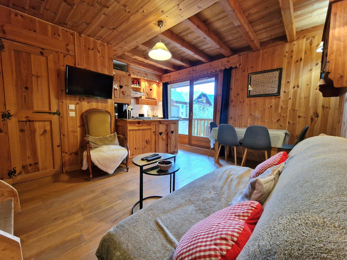 Estudio luminoso de 22 m² orientado al oeste en el segundo piso, con terraza, casillero para esquís en la planta baja, ascensor; 4/5 camas incluyendo sofá cama nuevo 08/2024 + 2 literas + cama supletoria, baño con bañera, inodoro separado . equipado con: microondas, cafetera de filtro, nespresso, placas eléctricas, TV, secador de pelo, plancha, barbacoa eléctrica, raclette, aspiradora. Cuna y trona disponibles. Wi-Fi privado. Se proporcionan edredones y almohadas, se pueden alquilar sábanas y toallas .