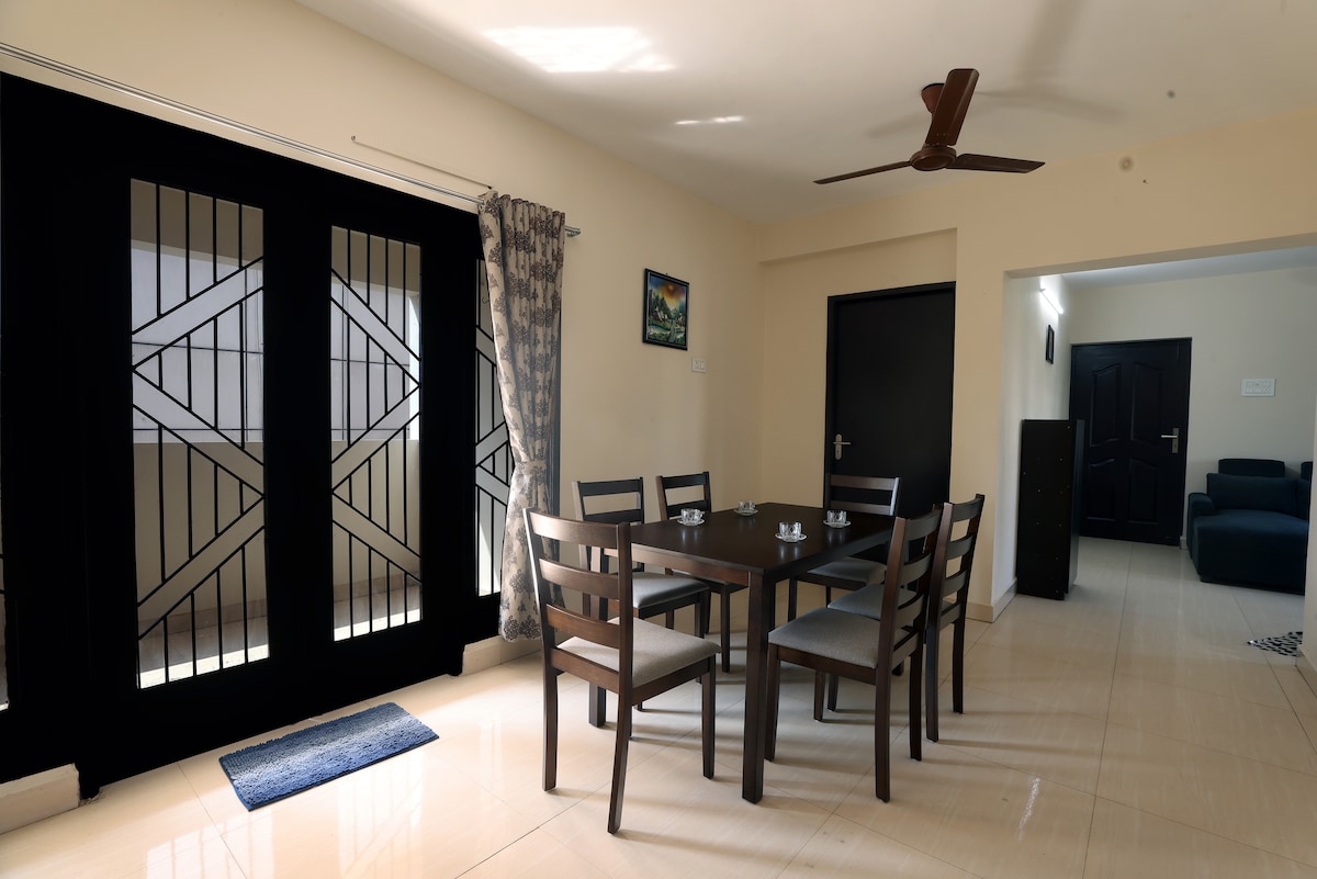 Un moderno apartamento con temática de olivos con interiores elegantes y comodidad. ⚠️ Ingresa el total de huéspedes durante la reservación para obtener el precio final. - Se admiten parejas y mascotas - Perfecto para una escapada con amigos. ⚠️ No hay ascensor y está en el segundo piso. - 2 dormitorios totalmente climatizados - Cocina con todo lo esencial para cocinar. - Wi-Fi gratis. - Netflix y OTT gratis - Scooter en renta disponible Perfecto para estancias largas y vacaciones en casa * Entrega de comida en línea a domicilio (Swiggy/Zomato/Zepto) *Uber/Ola están disponibles