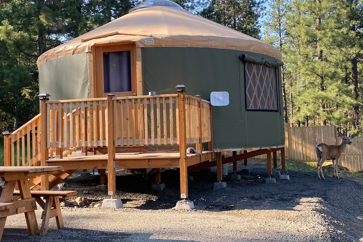 Acogedora yurta fuera de lo común, pero cerca del hermoso lago Wallowa, la encantadora ciudad de Joseph y toda la belleza que las montañas Wallowa circundantes tienen para ofrecer. Estamos ubicados en los bosques de pinos a unas 5 millas de las ciudades de Joseph y Enterprise. Este espacio es ideal para una escapada tranquila para una pareja, unos amigos o una familia con niños pequeños. La yurta comparte una entrada con la residencia principal de los anfitriones. ¡Respeta el barrio y las normas de la casa y disfruta de tu estancia!