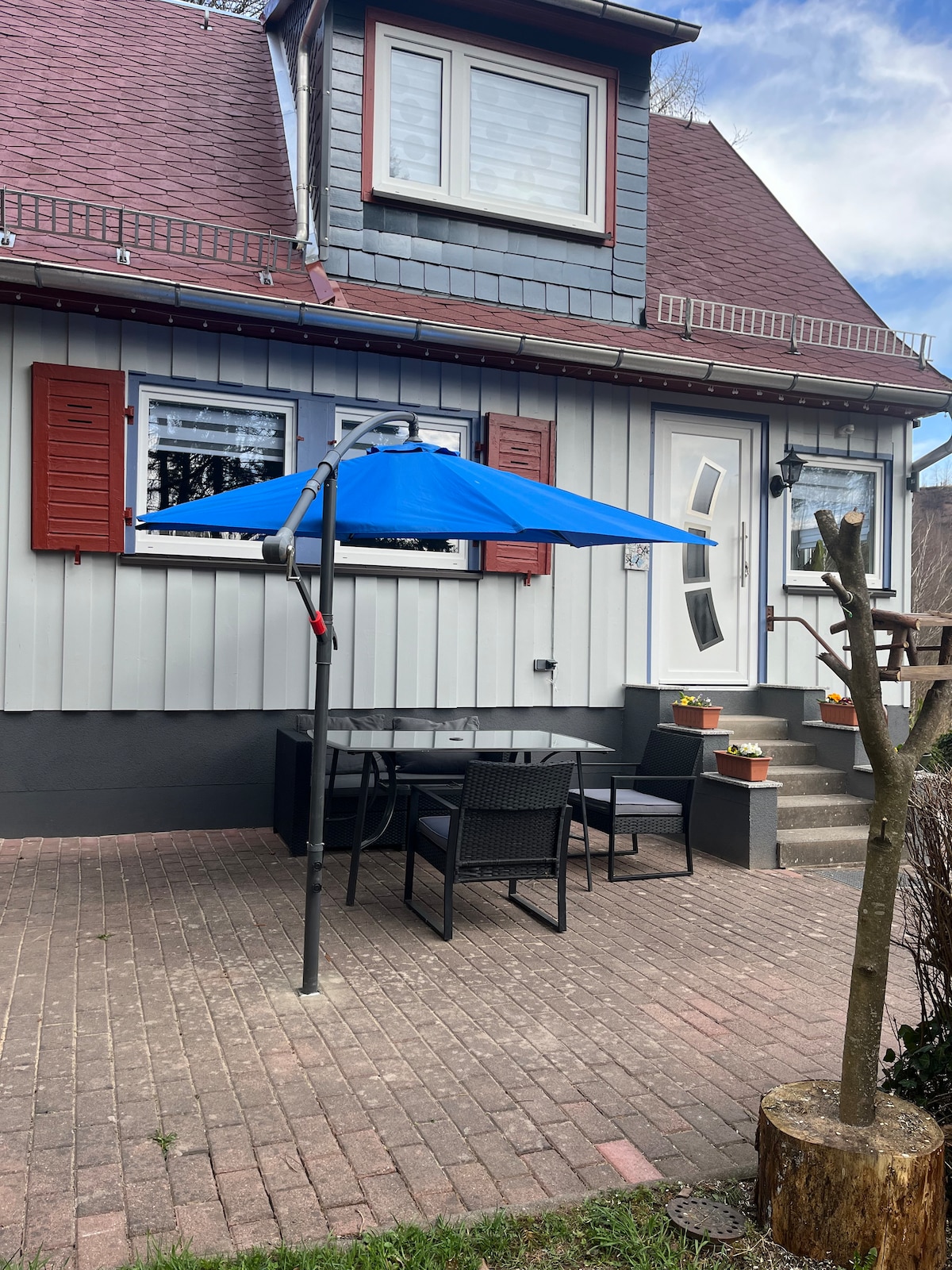 Nuestra casa está en una zona residencial de primera y junto al bosque. Todo fue renovado y amueblado amorosamente en 2023. Hay estacionamiento disponible frente a la casa. La casa tiene capacidad para 10 personas. Con la casa hay una terraza parcialmente cubierta y una barbacoa. Thüringen es famoso por su "mejor bratwurst del mundo" y queremos que disfrutes al máximo. El centro de la ciudad está a 10 minutos a pie y el restaurante "Berggarten" en el bosque con un bonito parque infantil a unos 20 minutos.
