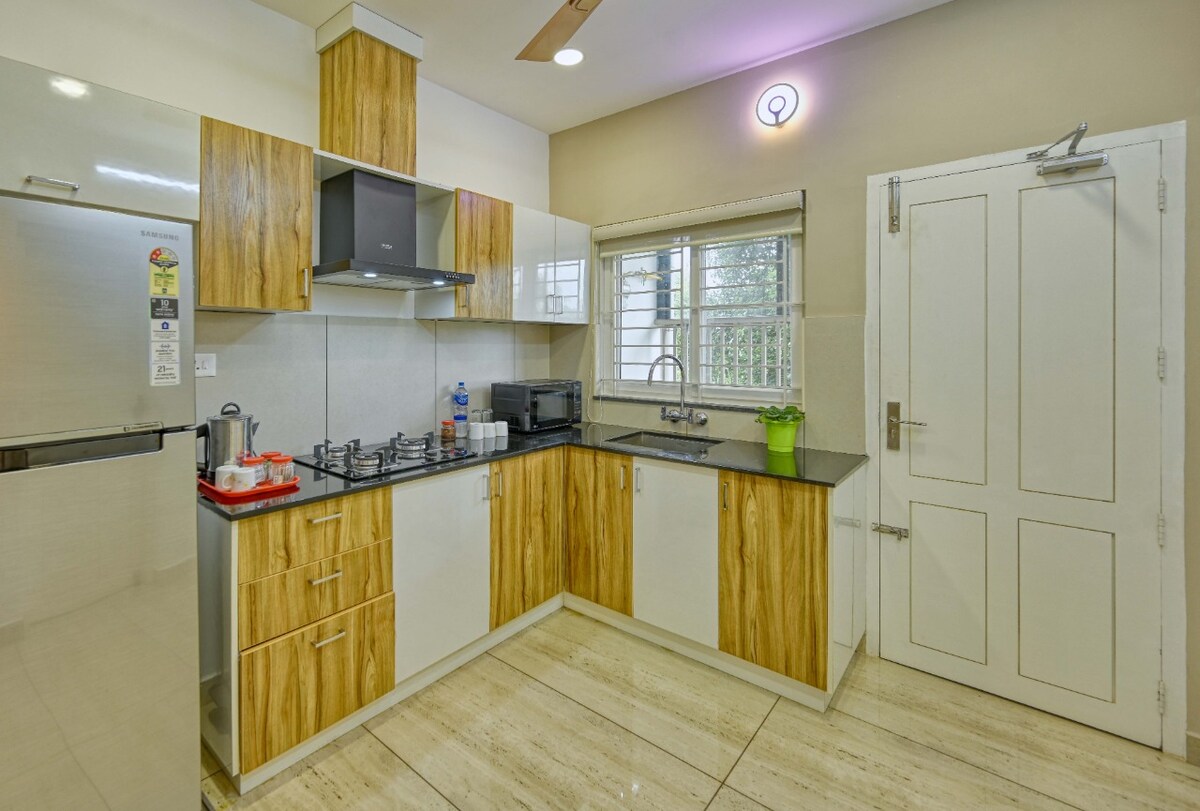 Descubre tu hogar lejos de casa en el barrio más elegante de Kochi. Nuestro apartamento recientemente renovado combina el encanto del viejo mundo con la comodidad moderna, lo que lo convierte en la base perfecta para el trabajo, el ocio o las estadías largas. A poca distancia de cafeterías, restaurantes elegantes, boutiques, salones, tiendas, hospitales, a solo unos minutos. Disfruta de una vida segura con seguridad 24/7, WiFi de alta velocidad, respaldo de energía y estacionamiento cubierto. ¡Es la base perfecta para relajarse, recargar energías y sentirse como en casa en el carril más querido de la ciudad!