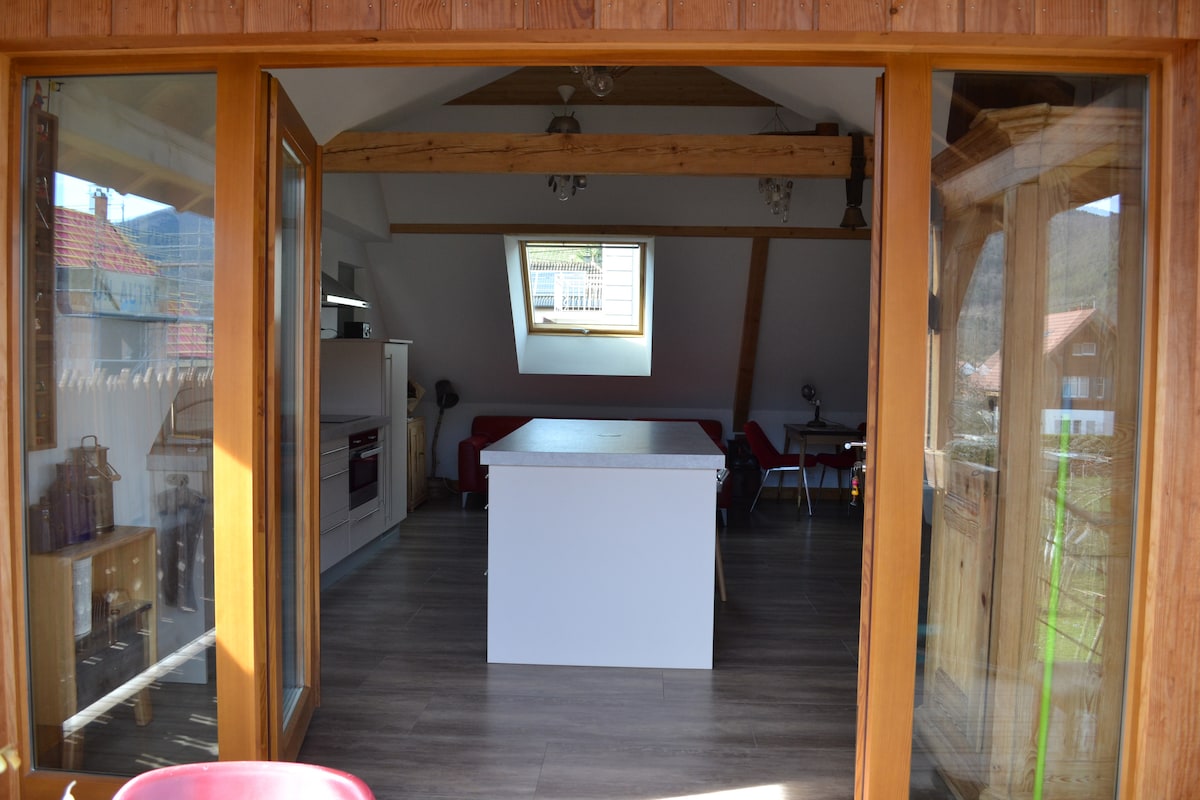 Descubra «Chez Lorette»: un estudio renovado en el corazón de Muhlbach, pueblo enclavado en medio de las montañas. Idealmente situado cerca de las rutas de senderismo, las estaciones de esquí y el mercado de Navidad. Tenga en cuenta: ¡Situado en un pueblo típicamente alsaciano! Prepárese para el encanto auténtico: LA IGLESIA SUENA regularmente, El despertar matutino va acompañado del canto de los gallos, Los rebaños de vacas pastan Los agricultores locales trabajan temprano para alimentar a la comunidad.