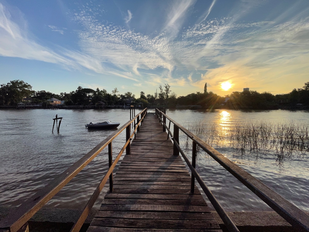Hermosa casa en el delta, muy practica y cómoda, totalmente equipada, a 700mts. de continente, 5 minutos de navegación muy relajante en lancha de traslado incluido en el precio. Ubicada dentro del barrio nautico cerrado Aldea Del lujan. Ideal para estar en familia en contacto con la naturaleza, pero si necesitas trabajar también disponemos de Wifi (Starlink). Excelente lugar para descansar de la ciudad estando en muy pocos minutos, a 5 minutos de Villa La Nata, Nordelta, y a 45 minutos de CABA.