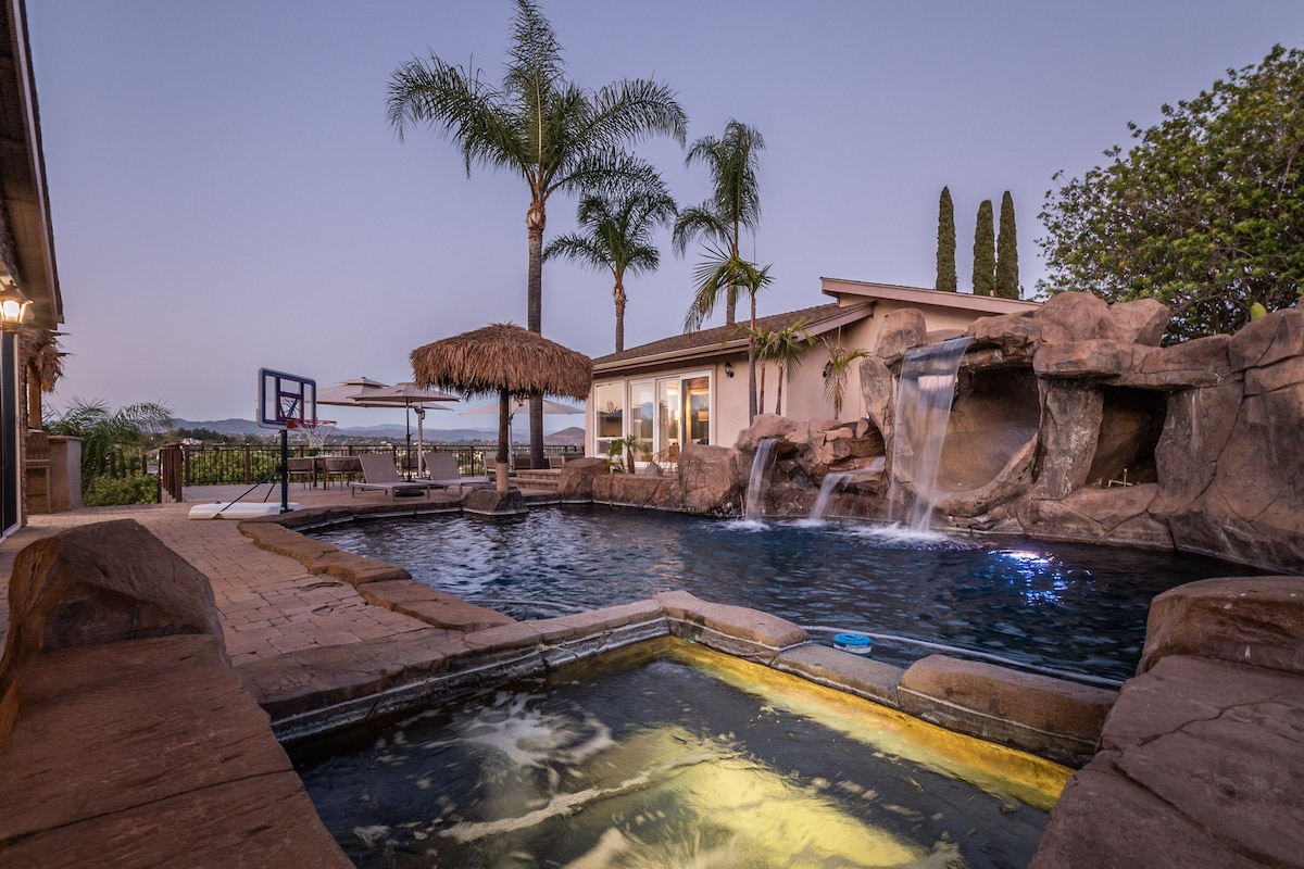 Este es el refugio perfecto para reunirse con familiares y amigos para descansar, nadar, beber, jugar, comer y relajarse. ¡Tu propio centro vacacional privado! Esta propiedad (medio acre) se encuentra en un barrio tranquilo, rodeado de altos eucaliptos y palmeras. Verás pájaros coloridos y el jardín de flores atrae a las mariposas. La piscina espumosa cuenta con una cascada y jacuzzi climatizado, con muchos lugares para relajarse. Además de una divertida casa de huéspedes tipo «granero» con sala de juegos y dormitorio loft.