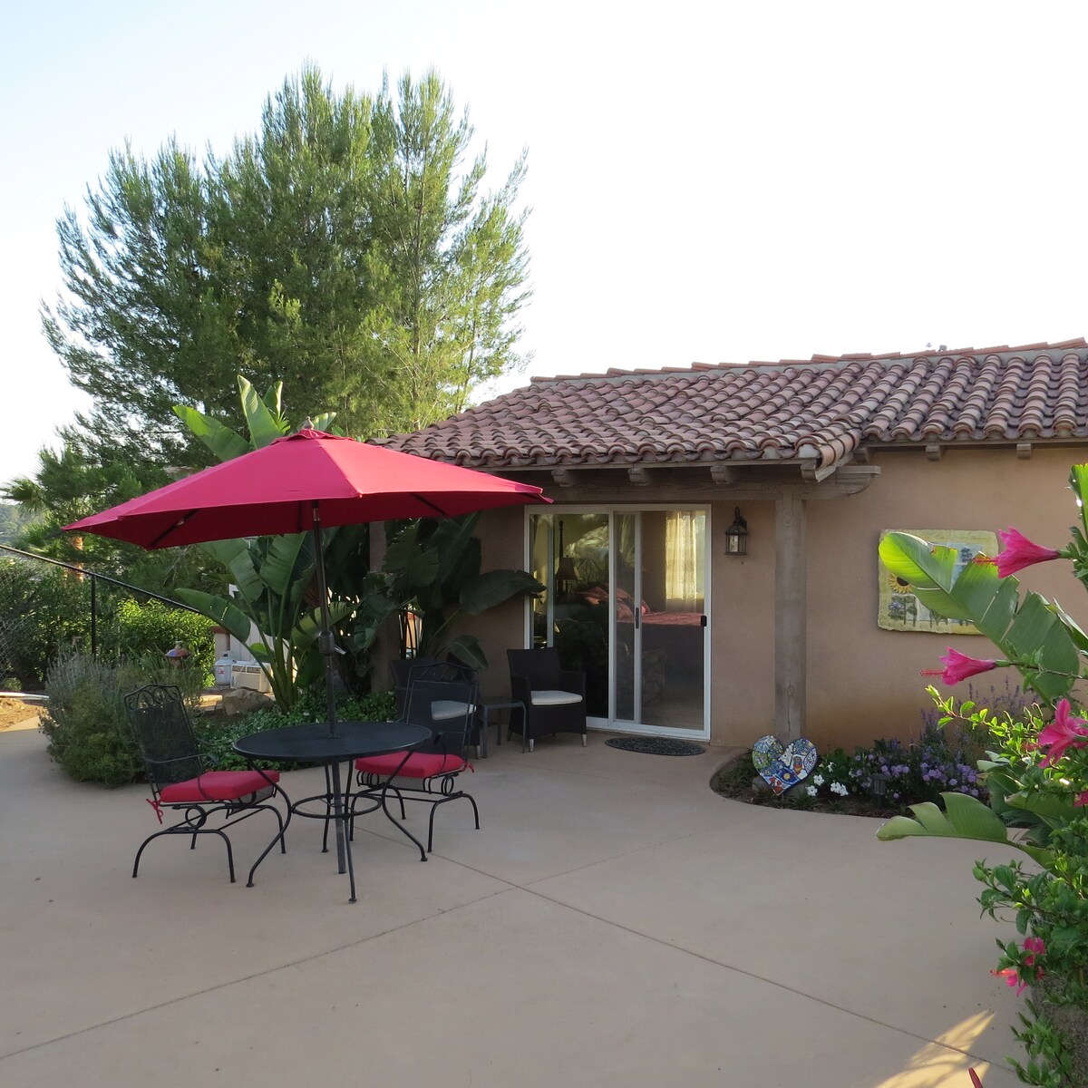 Nuestra casita es una casa de huéspedes remodelada en una propiedad bellamente ajardinada llena de obras de arte coloridas de los propietarios. La casita está detrás de nuestra casa, pero tienes total privacidad, incluido tu propio patio privado. Cerca de playas, la región vinícola de Temecula, el San Diego Zoo Safari Park y más, en un entorno rural tranquilo. A 3 minutos de dos mercados/delis (uno con un bar y música en vivo) y a solo 5 minutos de la autopista I-15.