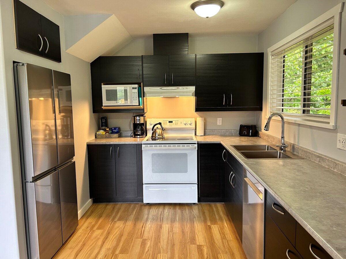 Olvídate de las preocupaciones en este gran alojamiento: ¡es un oasis de tranquilidad! Nuestra suite es nueva y cuenta con todas las comodidades para que tu estancia sea especial. Nuestra suite Potters es perfecta para una pareja o una persona y se encuentra en una ubicación céntrica en el pueblo con todos los servicios a poca distancia a pie. La suite está equipada con un dormitorio tamaño queen, baño, una amplia sala de estar, TV Roku, wifi y una entrada independiente. Gold River es una comunidad única entre Nootka Sound y Strathcona Park.